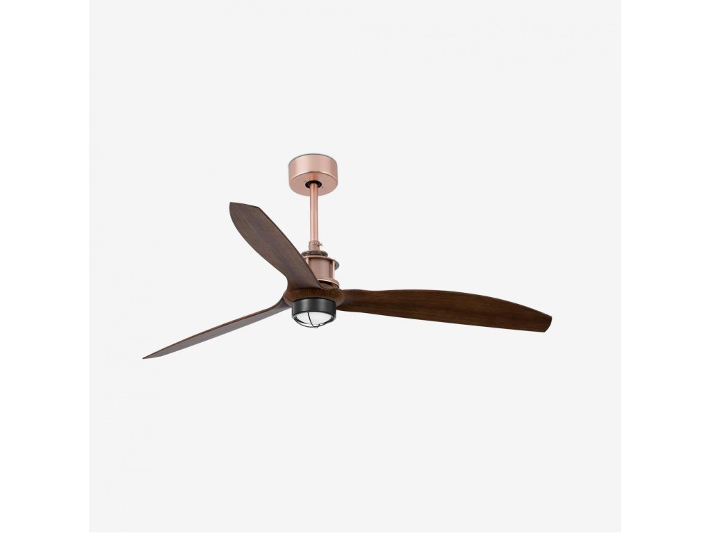 JUST FAN M LED, meď/drevo, stropný LED ventilátor s DC motorom - FARO