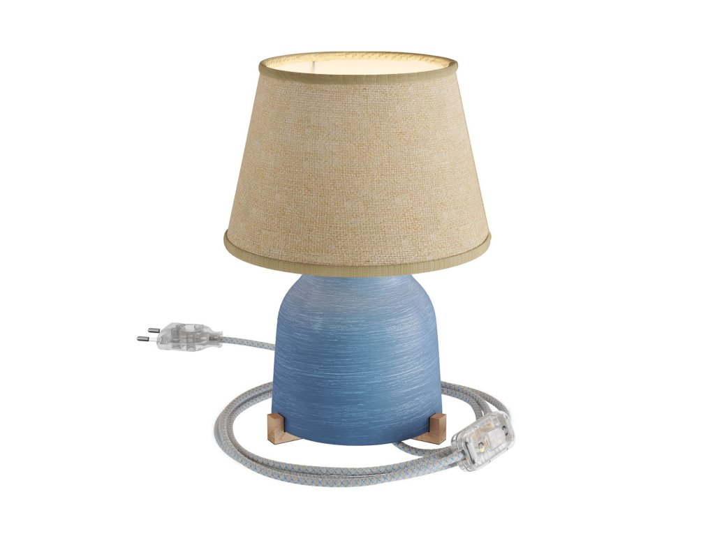 Keramická stolná lampa vaso s tienidlom Impero, s textilným káblom, vypínačom a dvojpólovou zástrčkou