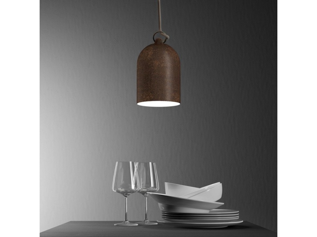 Vytvorte si elegantné závesné svietidlo s jedným alebo viacerými tienidlami Zvon XS. Menšie rozmery tohto tienidla, ktoré je kompletne vyrobené v Taliansku, sú ideálne na výrobu originálnych a elegantných svietidiel. Osvetlite si kuchynskú linku jedinečnou montážou viacerých tienidiel rovnakej veľkosti, alebo si vytvorte originálnu zostavu svietidiel nad stôl alebo terasu kombináciou tienidiel Zvon XS s jeho väčšími súrodencami Zvon M a XL. Tienidlo Zvon XS má jednoduchú montáž: stačí omotať textilný kábel okolo závesného očka tienidla, na koniec kábla pripojiť E27 objímku a do nej naskrutkovať dizajnovú žiarovku, ktorú ste si vybrali pre svoje závesné svietidlo. Každé farebné prevedenie tohto tienidla je navrhnuté tak, aby nejakým spôsobom vystihovalo a dopĺňalo určitý štýl interiéru. Hladká biela pre čistý elegantný efekt, čierna tabuľová farba pre originálny vzhľad svietidla, alebo v súčasnosti najoriginálnejšie prevedenie - s efektom hrdze a betónu - ideálne do industriálne ladených interiérov.