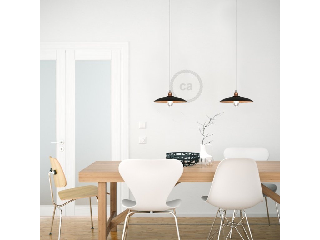 Zo spodného menu si vyberte farebné prevedenie tienidla, ktoré najviac vyhovuje štýlu vášho interiéru, doplňte E27 objímkou na upevnenie tienidla a celé svietidlo pripojte na jeden z našich farebných textilných elektrických káblov. nádherne.