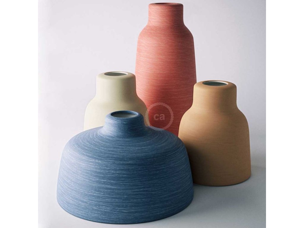 Keramické Tienidlo v tvare Vázy z našej kolekcie Materia dodá vášmu interiéru príjemný farebný nádych a svojim typickým tvarom vnesie závan Stredomoria. Ručne vyrobené v Taliansku. Toto Tienidlo v tvare vázy je možné zakúpiť vo viacfarebných prevedeniach: od lesklej bielej, ktorá dodáva tienidlám neutrálny svetlý vzhľad ideálny do každého interiéru, cez hrdzavý efekt, ideálny do industriálnych interiérov, až po prírodné odtiene farieb ako je koral alebo terakota, ktoré v interiéri vytvoria prirodzene neutrálnu až dedinu. Vnútorná plocha tienidla má lesklú bielu farbu, aby pekne odrážala a šírila svetlo zo žiarovky. Remeselná výroba týchto keramických tienidiel znamená, že každý kus je jedinečný a môžu sa teda medzi sebou drobne líšiť odtiene farieb!