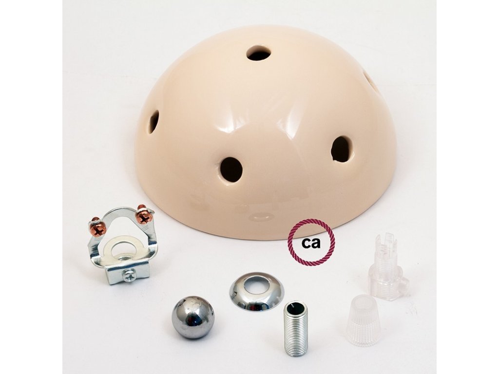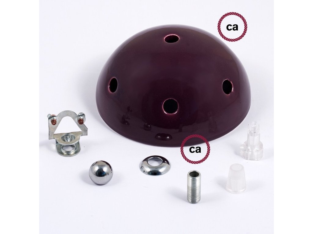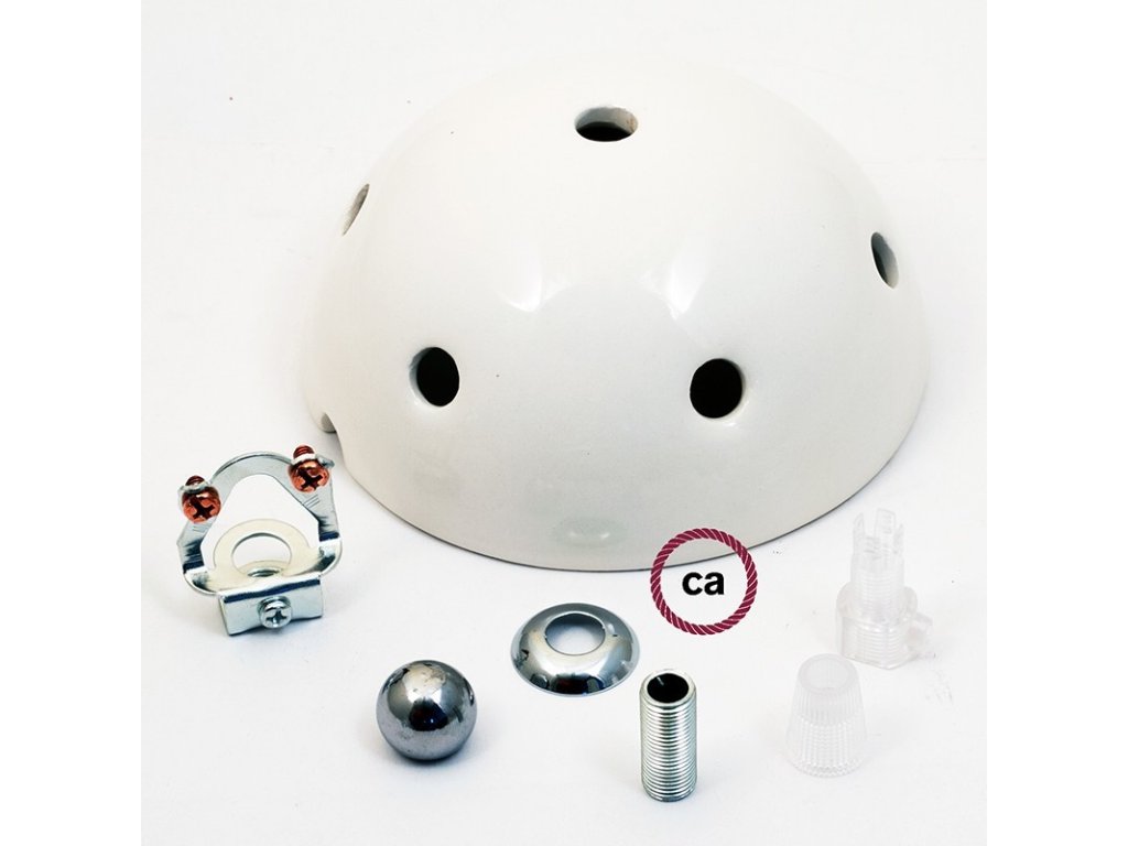 UPOZORNENIE: Elektrické svorky pre zapojenie stropného baldachýnu k elektrickému vedeniu NIE JE SÚČASŤOU balenia, ale je možné ich zakúpiť samostatne. Stropný baldachýn so 7 otvormi (6 obvodových a 1 stredový), ideálny na vytvorenie viacnásobných závesných svietidiel s textilným káblom a keramickými objímkami v rovnakej povrchovej úprave. Každý baldachýn je dorobený a smaltovaný ručne a vďaka drobným rozdielom spôsobeným výrobným procesom je jedinečný.