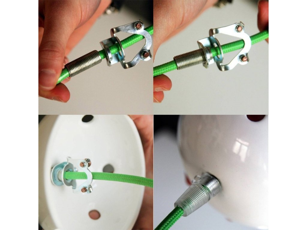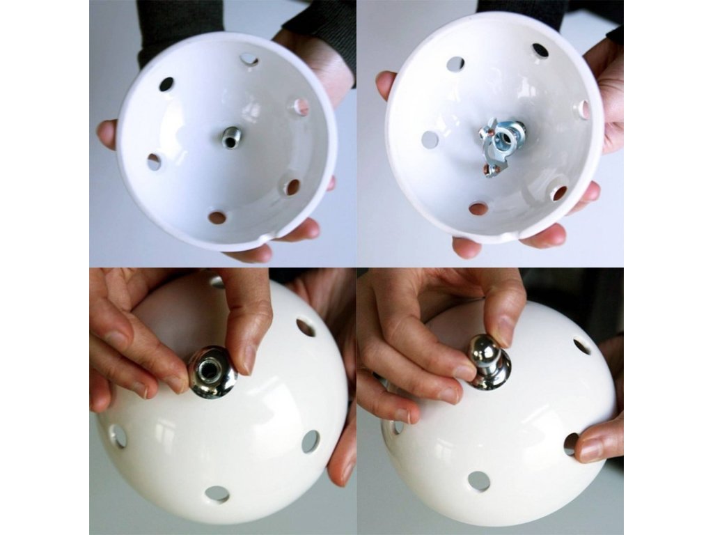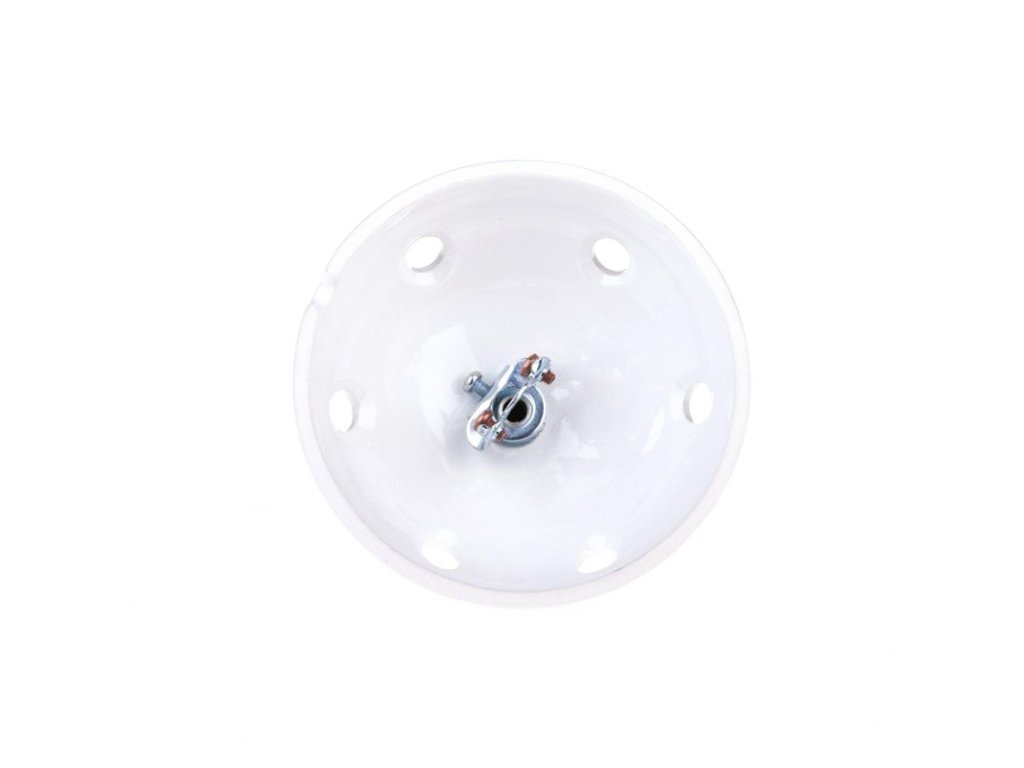 Zostava obsahuje: 1 keramický stropný baldachýn Ø 130 mm, 1 dutý závitový šrób, 1 priehľadná káblová priechodka z termoplastu, 1 stropný háčik so závitom, 1 chrómovaná kruhová záslepkal (na použitie, pokiaľ nie je využitý stredový otvor pre svietidlo).