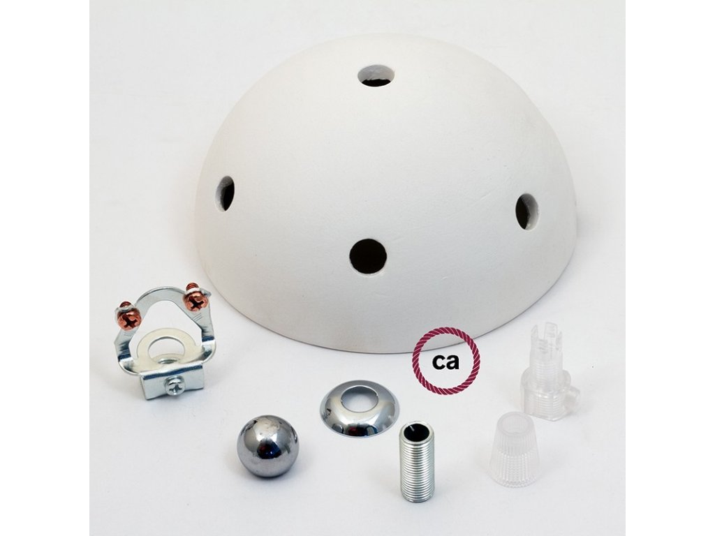 Keramický stropný baldachýn so 7 otvormi v sade je vhodný na montáž nástenného a stropného svietidla so 7 zdrojmi svetla. Keramika, ktorej zmes je vyrobená prevažne z hliny, je ušľachtilým materiálom, ktorý vyžaduje dlhé spracovanie a pomalé vypaľovanie: vďaka svojmu vzácnemu pôvodu je vhodný pre domácnosti a prostredie s klasickým a rafinovaným štýlom. Je ručne vyrobený v Taliansku a je možné ho použiť na zostavenie niekoľkých farebných lámp s viacerými závesmi. Tento stropný baldachýn so 7 otvormi je rozhodne pre Vás, ak: