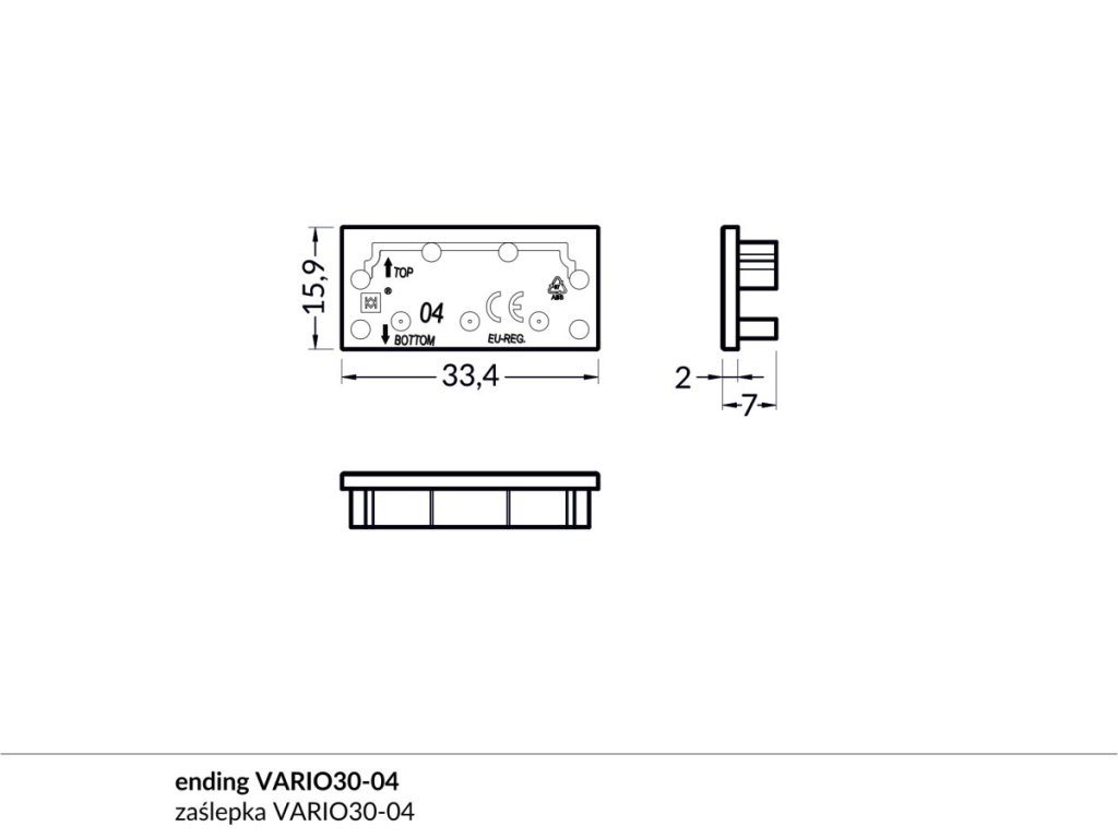 Bílá koncovka pro profil VARIO30-04, materiál plast, cena za 1ks.