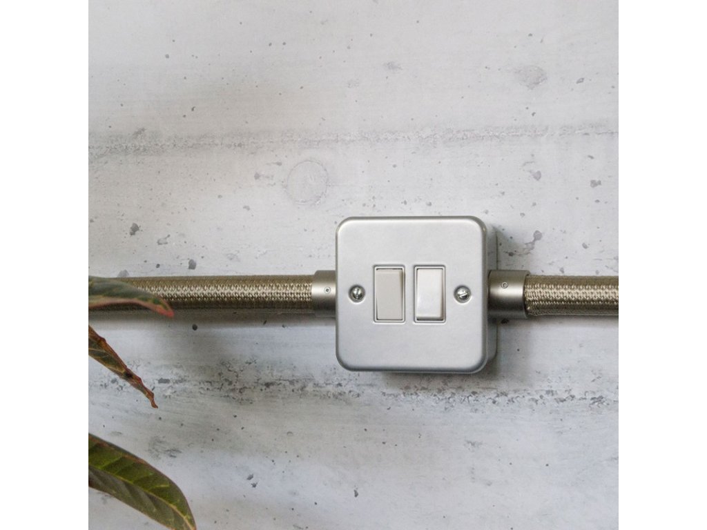 Creative-Tubes predstavuje jedinečný systém od Creative-Cables zložený z ohybných trubíc potiahnutých farebnou textíliou, ktorý umožňuje vytvoriť nevšedné farebné elektrické inštalácie. dvojitému vypínaču je možné túto kovovú škatuľu použiť ako dekoračný prvok a súčasne ako veľmi praktický doplnok na rozšírenie možností na vytvorenie ešte originálnejších svetelných inštalácií!