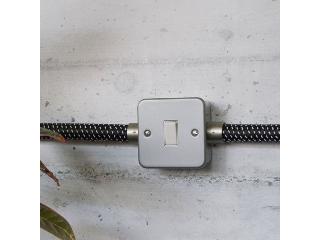 Creative-Tubes predstavuje jedinečný systém od Creative-Cables zložený z ohybných trubíc potiahnutých farebnou textíliou, ktorý umožňuje vytvoriť nevšedné farebné elektrické inštalácie. Táto kovová krabica s vypínačom je určená na pripojenie 20mm trubice Creative-Tubes. Creative-Tube sa jednoducho pripojí ku krabici so zásuvkou pomocou kovovej káblovej koncovky so závitom M20 (nie je súčasťou balenia). Vďaka vypínaču je možné túto kovovú škatuľu použiť ako dekoračný prvok a súčasne ako veľmi praktický doplnok na rozšírenie možností na vytvorenie ešte originálnejších svetelných inštalácií!