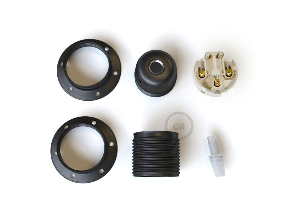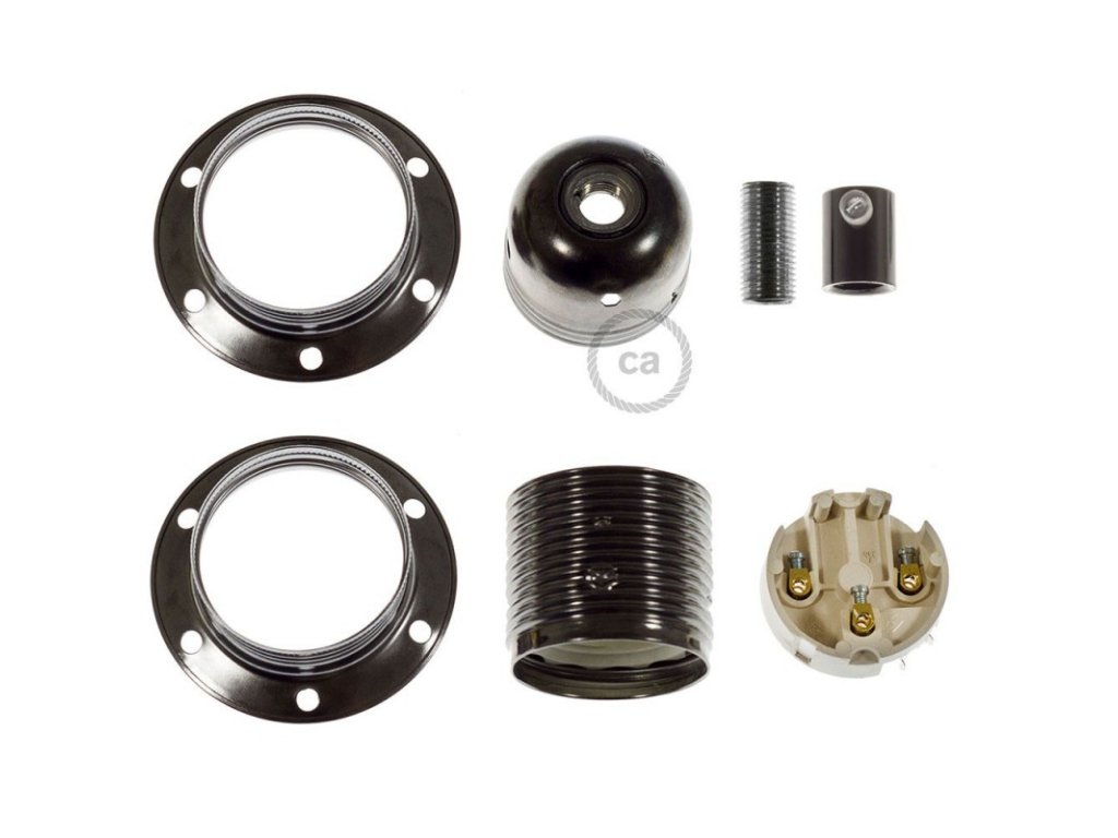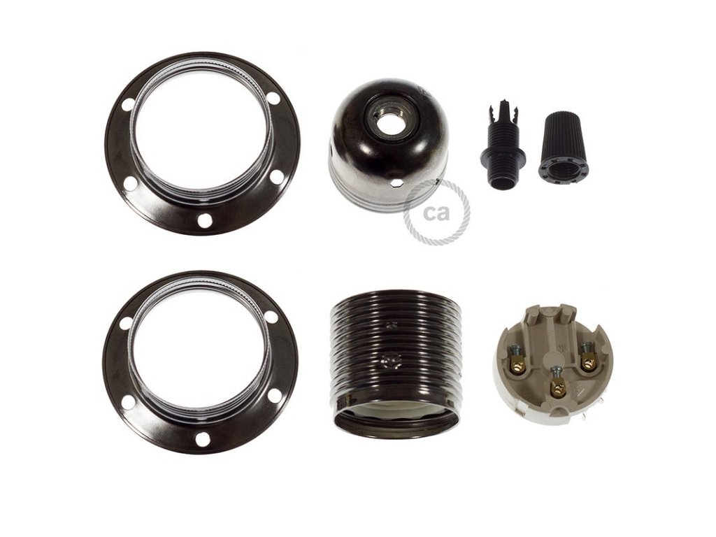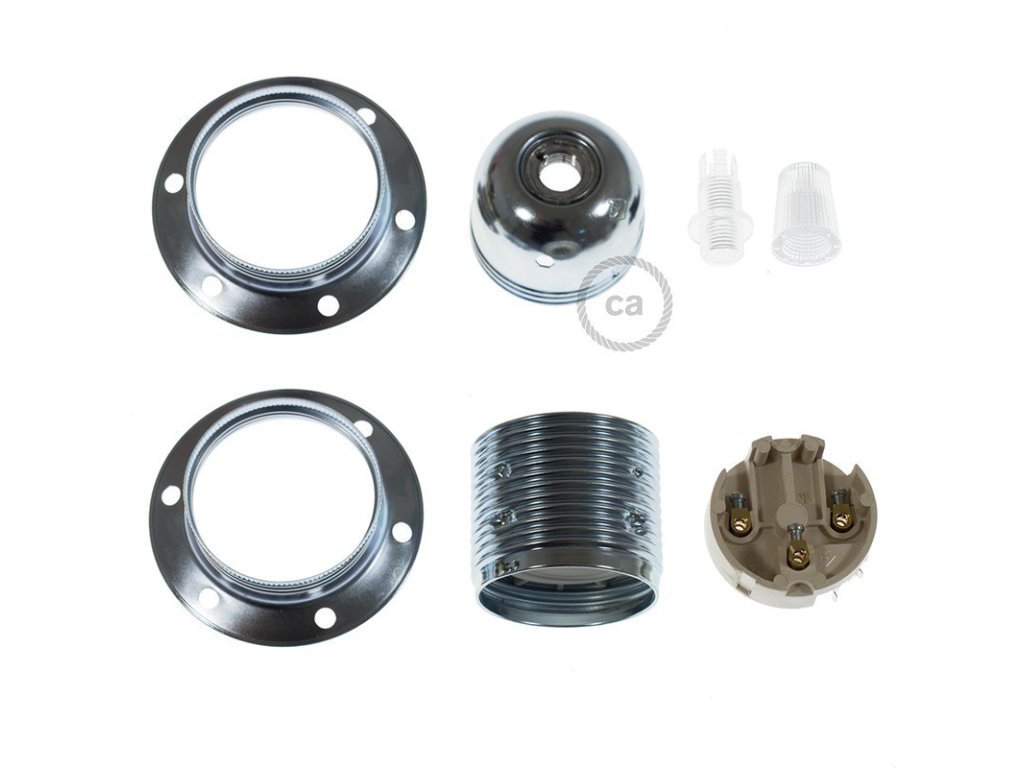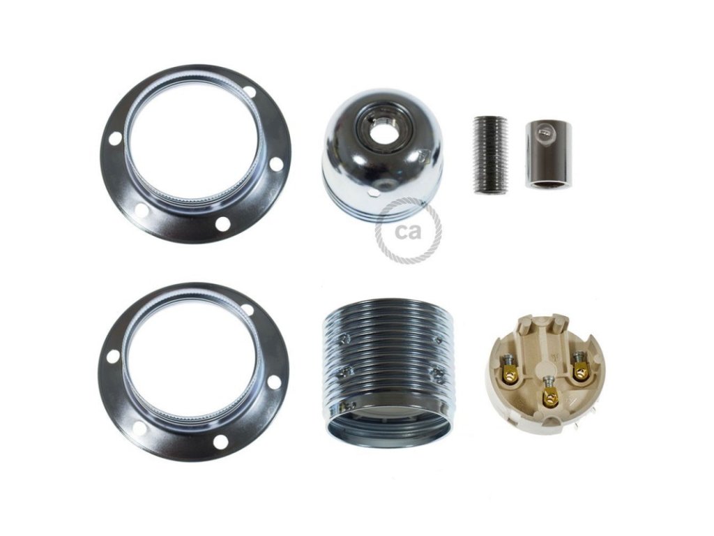 Kovová objímka E27 s krúžkami pre tienidlo v sade
