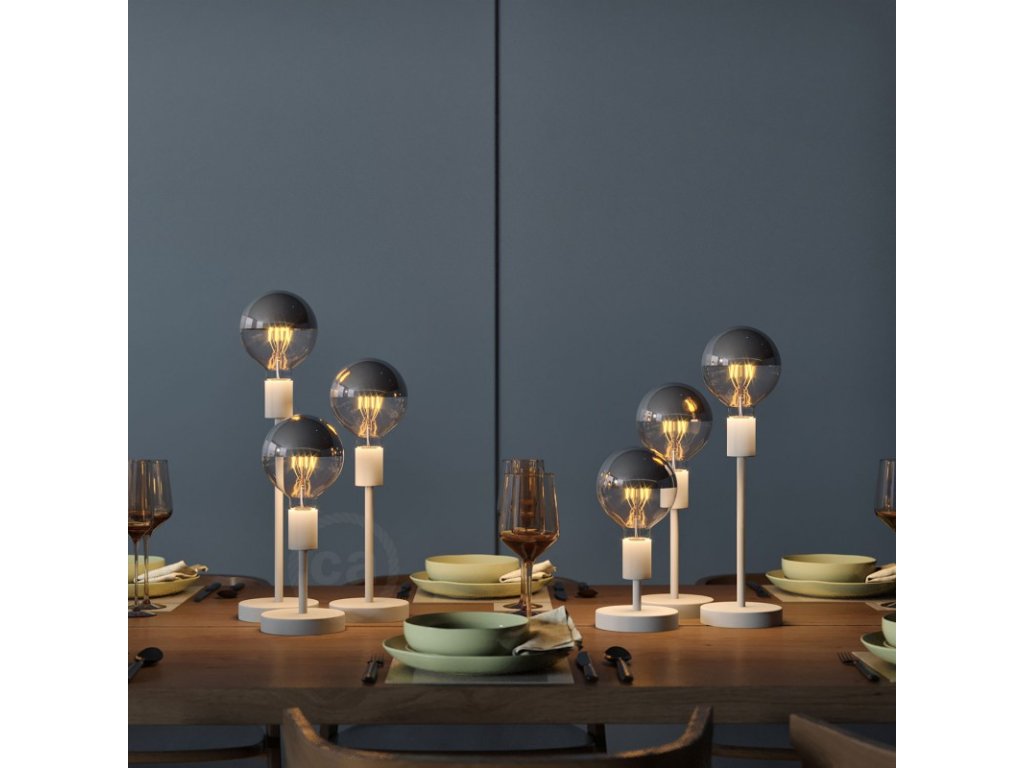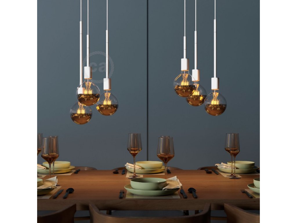 Kovová predlžovacia trubička slúži na kreatívne prispôsobenie stropnej alebo stolnej lampy. Pri použití so stropným baldachýnom a objímkou ozdobia vaše závesné svietidlo, pokiaľ sú použité so svietidlom Posaluce, zvyšujú jeho výšku a premenia ho na štíhlu stolnú lampu. Toto príslušenstvo je k dispozícii v 6 dĺžkach od 5 do 30 cm a vo všetkých kovových povrchových úpravách z ponuky komponentov Creative Cables.
