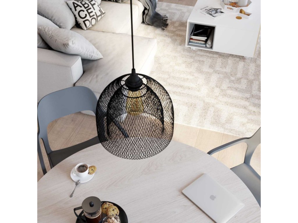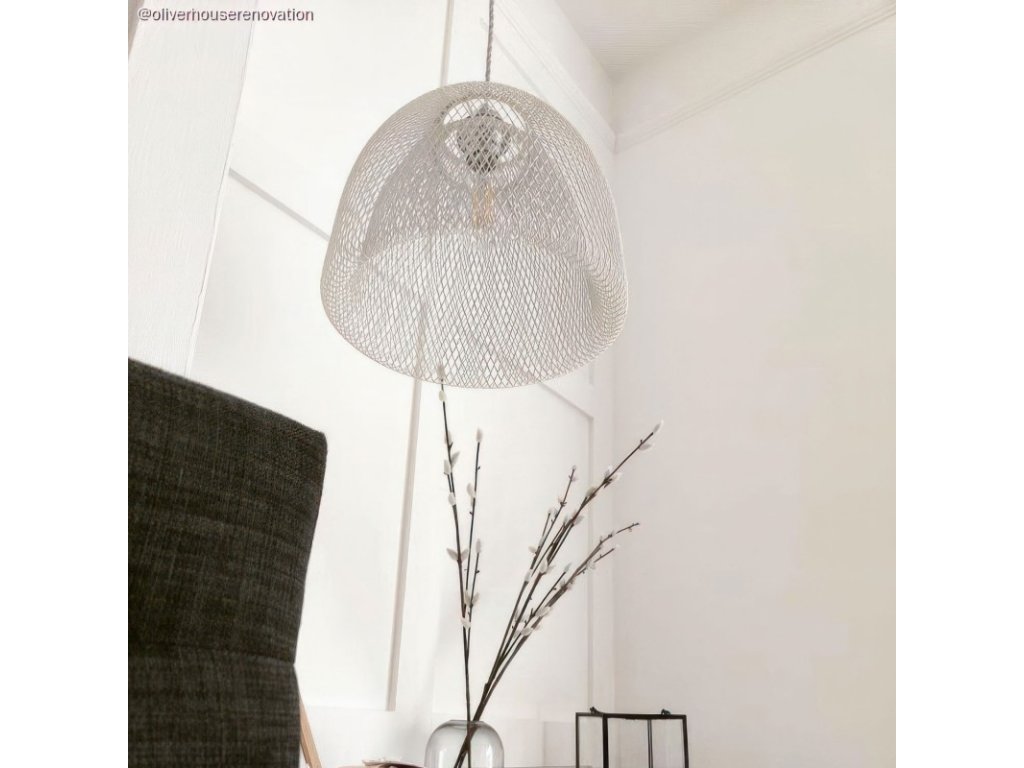 Ghostbell XL je kovové tienidlo väčších rozmerov, ktoré necháva žiarovku viditeľnú, len ju uzavrie do charakteristickej klietky z čiernych kovových drôtov. Je ideálny pre moderné závesné svietidlá s odkazom na industriálny štýl. Toto tienidlo navrhujeme použiť na osvetlenie väčších priestorov ako sú lofty alebo veľké obývacie izby, alebo do väčších spoločných priestorov firiem alebo kancelárií. Vytvorte si vlastnú svetelnú inštaláciu s tienidlom Ghostbell XL. Vyberte si jednu z našich E27 objímok s krúžkami na upevnenie tienidla, k nej si z mnohých dostupných farebných prevedení vyberte vhodný textilný kábel a celú zostavu doplňte žiarovkou a ďalšími potrebnými komponentmi z ponuky Creative-Cables.