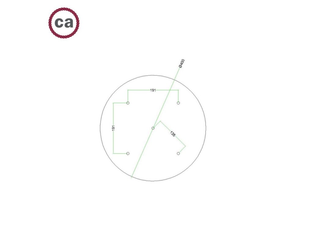 Kruhový stropný baldachýn ROSE ONE, 400 mm, 5 otvorov a 4 bočné otvory