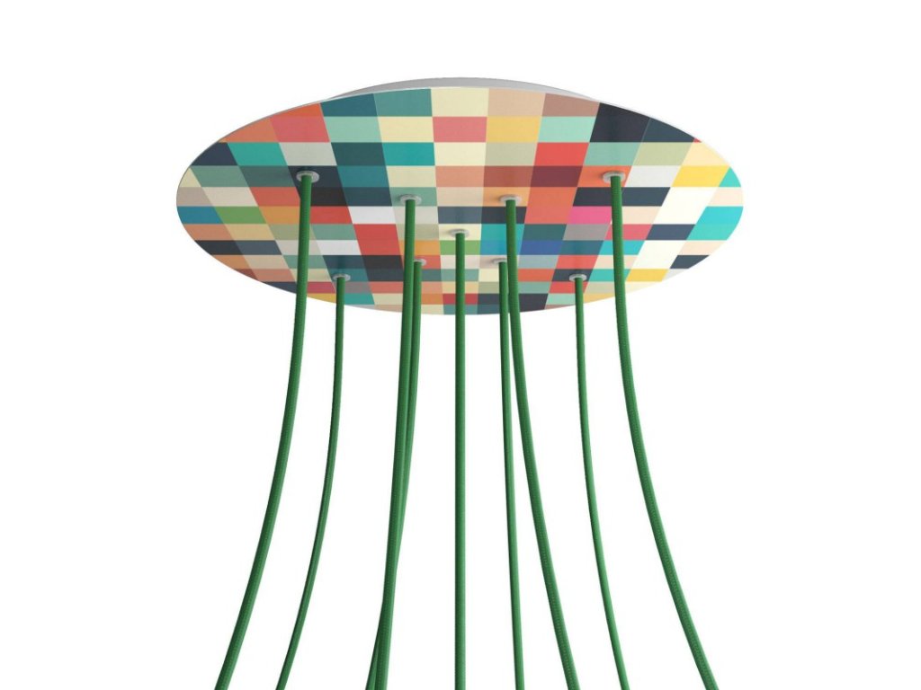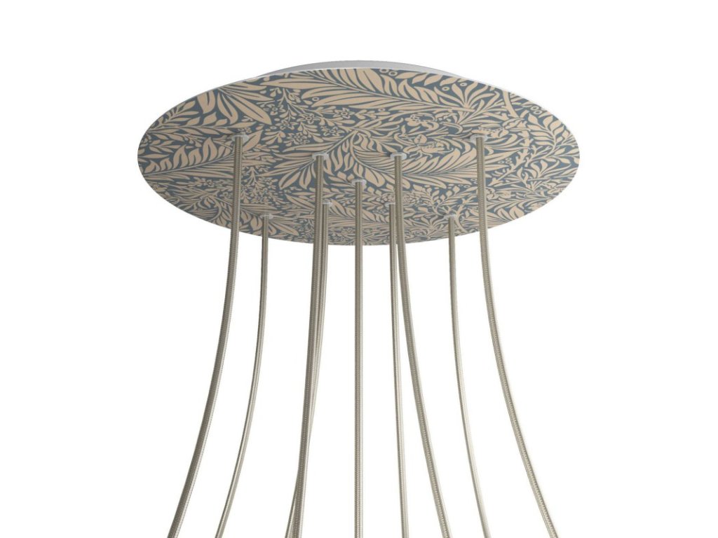 Kruhový stropný baldachýn z edície Rose-One System predstavuje exkluzívne riešenie z dielne Creative-Cables, vďaka ktorému budú Vaše svietidlá vyzerať ešte dokonalejšie. Tento kruhový stropný baldachýn Rose-One System s priemerom 400 mm a 9 otvormi s rozmiestnením v tvare X je zostavený z menšieho kovového stropného baldachýnu, na ktorý sa pomocou káblových priechodiek pripevní kruhová platňa s farebným alebo obrazovým motívom s priemerom 400 mm.