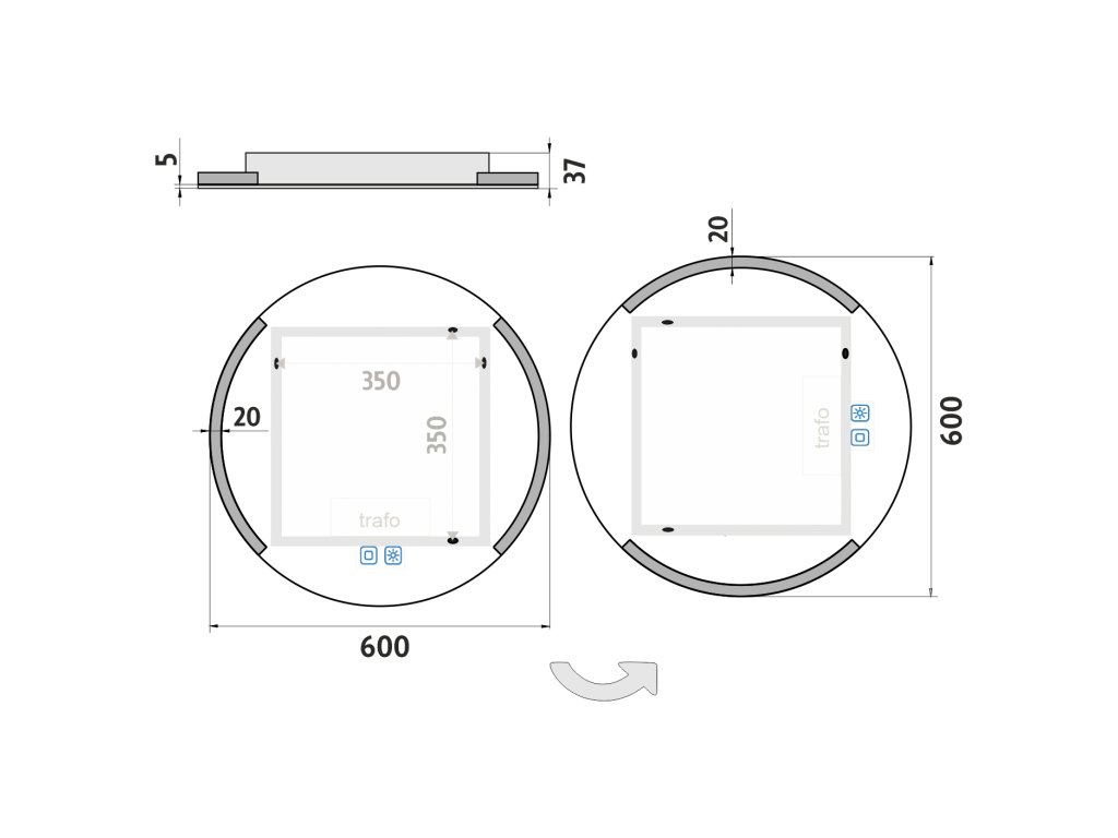 Kulaté LED zrcadlo pr. 600 se dvěma dotykovými senzory