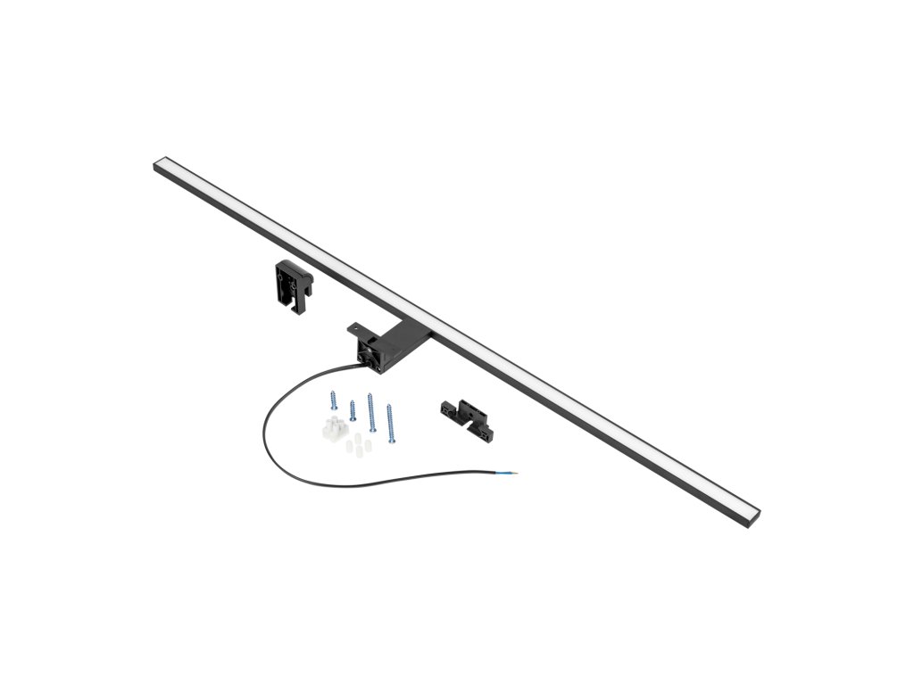 Kúpeľňové LED svietidlo nad zrkadlo ORN na osvetlenie zrkadiel, vitrín, obrazov alebo iných prvkov, ktoré chceme vystaviť svetlom. Difúzor vyrobený z plastu má podlhovastý, plochý tvar, vďaka ktorému zaisťuje rovnomerné osvetlenie daného povrchu. Vďaka jednoduchému a elegantnému tvaru tohto svietidla bude lampa vyzerať dobre ako v modernej kúpeľni, tak v interiéroch plných klasického nábytku. Svetelný zdroj v tomto výrobku má podobu SMD LED diód, ktoré vyžarujú svetlo s prirodzenou bielou farbou. Napriek nízkej spotrebe energie 18 W je svetelný tok vyžarovaného svetla vysoký a činí 1600 lm. Stupeň krytia IP44 zaručuje dostatočnú ochranu proti prachu a striekajúcej vode z akéhokoľvek uhla. Vďaka tomu je svietidlo bezpečným riešením na inštaláciu v kúpeľni a ďalších miestnostiach so zvýšenou vlhkosťou. Tento typ svietidla bol navrhnutý tak, aby umožňoval 4 spôsoby inštalácie - do vitríny, nad zrkadlo a 2 rôzne spôsoby montáže na stenu. Výrobok je vyrobený z čierneho hliníka. Dĺžka svietidla je 100 cm.