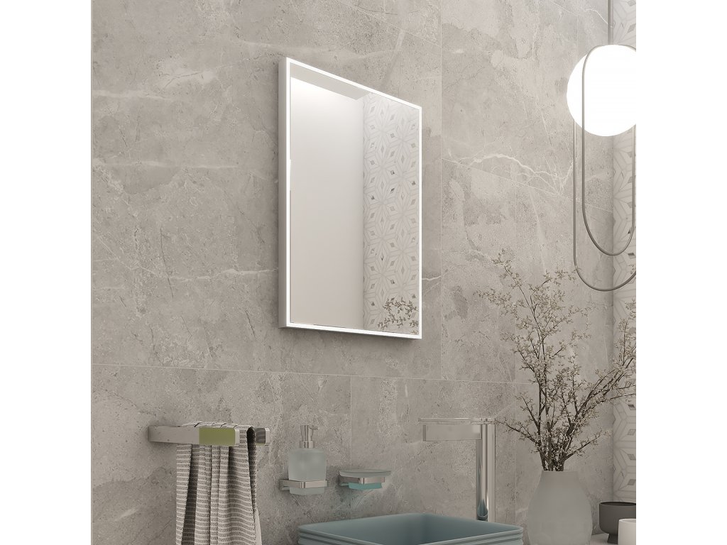 Výkonné LED diódy po celom obvode zrkadla zakryté 8mm rámčekom. Konštrukcia je z hliníkového rámu 32x19 mm, sklo zrkadla s hrúbkou 5mm. Zrkadlo je možné uchytiť horizontálne a vertikálne. Pripojenie 220-240 V. Ochrana IP 44. Bez vypínača. Zapojenie do el. rozvodu a zapínanie cez vypínač svetiel v miestnosti. Farebná teplota denná biela. Životnosť LED diód je až 50 000 hodín.