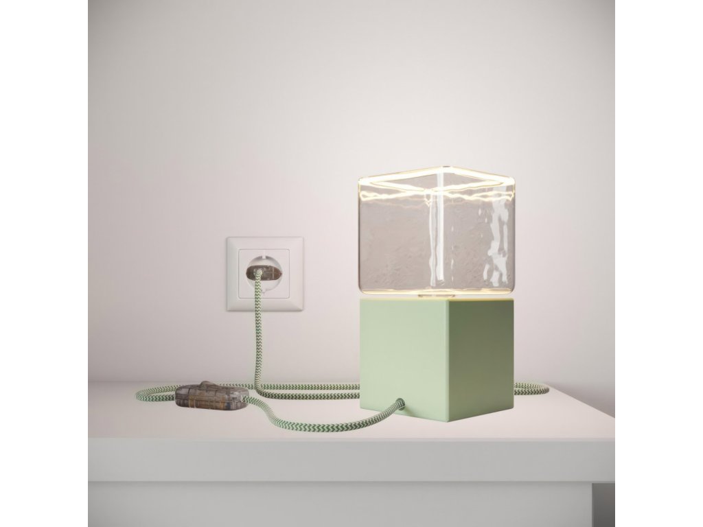 Spolu s vypínačom, dvojpólovou zástrčkou a vstavanou objímkou E27 je možné Posaluce Cubetto zakúpiť aj so žiarovkou. Pre ešte charakteristickejší geometrický návrh sme pre vás vybrali LED žiarovku Kocka z edície Floating!