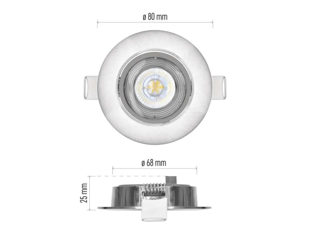 farba svetla: neutrálna biela|farba tela: brúsený nikel|diaľkový ovládač: ne|do chodby a na schodisko: áno|do dielne a garáže: ne|do kancelárie: ne|do kúpeľne: ne|do kuchyne: áno|do obývačky, spálne a detskej izby: áno|dosah senzora:- 50/60 Hz|index podania farieb (CRI): Ra > 80|kategória: EXCLUSIVE|krytie: IP20|materiál difúzora: plast (PC)|materiál LGP: neuvádza sa|materiál tela: hliník|montážny otvor: 68 mm|možnosť stmievania: ne|náhrada za žiarovku| a balkón: ne|pohybový senzor: ne|príkon: 5 W|predajný obal: 1 ks, krabica|prúd: 35 mA|rad: SIMMI|rozmer: priemer 80 × 25 mm|svetelná účinnosť: 90 lm/W|svetelný tok: 450 lm|0plot kruh|typ difúzora: číry|typ svietidla: bodovka|účnik: > 0,5|UGR<: neuvádza sa|uhol vyžarovania: 110°|umiestnenie: stropný|výstupný prúd zo zdroja: neuvádza sa|záručná doba: 3 roky|zdroj svetla: LED|životnosť: 2|