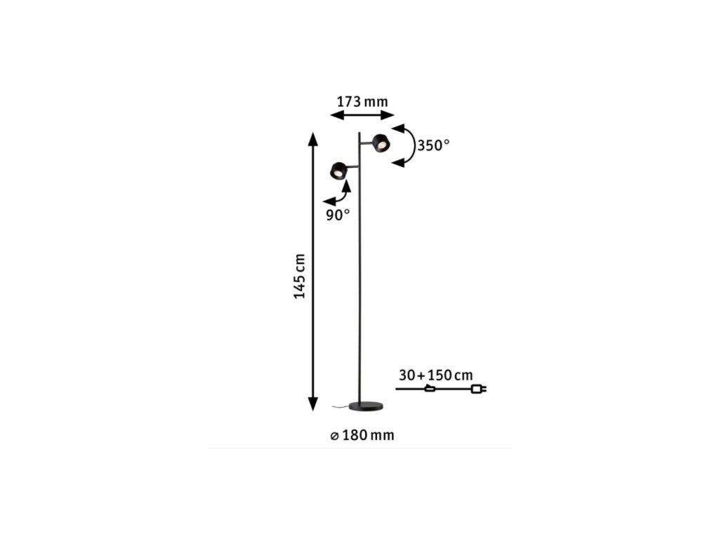 Podlahové svietidlo Puric Pane svojim subtílnym dizajnom poskytuje útulné osvetlenie v modernom štýle. Vďaka špeciálnej fazetovej šošovke, ktorá smeruje väčšinu svetla vyžarovaného LED čipom von smerom dopredu, je podlahové svietidlo vysoko účinné a vytvára fascinujúce svetelné efekty. Dve bodové hlavy je možné individuálne natočiť a umožňujú mnoho rôznych nastavení svietidla. Stojacie svietidlo možno napríklad použiť ako svetlo na čítanie a zároveň poskytuje nepriame svetlo vrhaním svetla na stenu. V kombinácii s ďalšími svietidlami vám rad Puric Pane umožňuje zladiť celý interiér. Teplota farby je 2700K, teplá biela. Prívodný kábel je textilný v čiernej farbe, rovnaké ako svietidlo. Kábel je dlhý 180 cm.