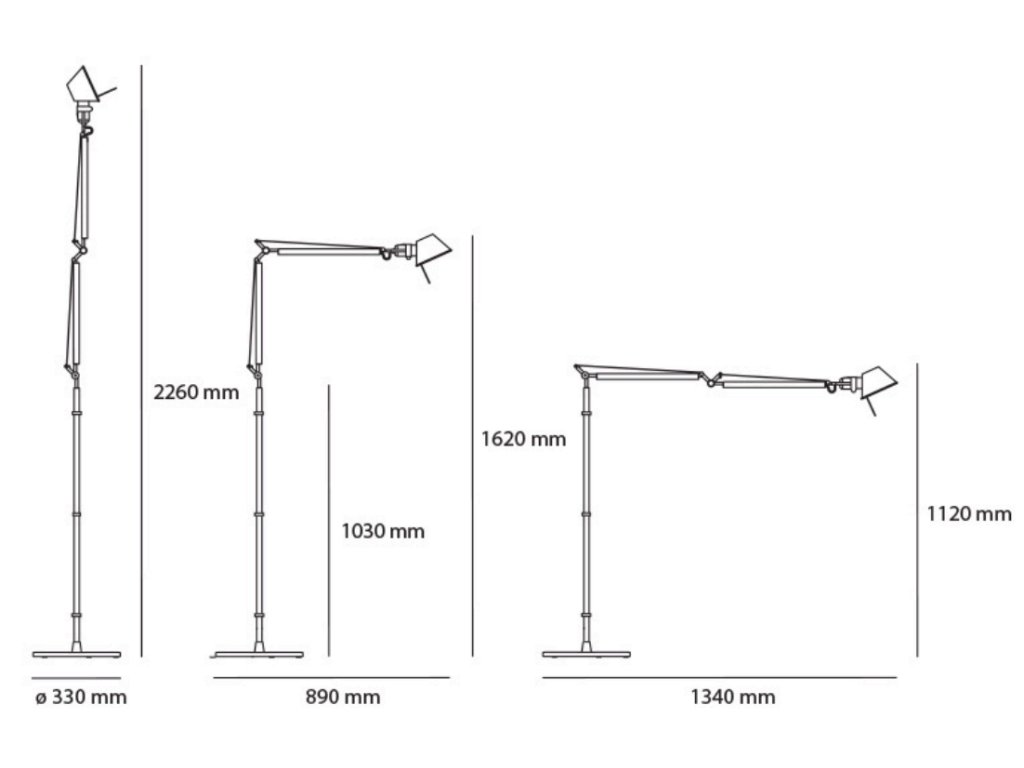 Základom lampy Tolomeo je rameno uchytené pomocou prepracovaného kĺbového mechanizmu a lanka, ktoré umožňuje ľubovoľné nastavenie lampy a nasmerovania svetla tam, kde je to potrebné. Lampa zároveň drží stabilnú polohu, do ktorej ju nastavíte. Lampa je dodávaná ako komplet, vrátane tienidla, ramena i podlahového podstavca.