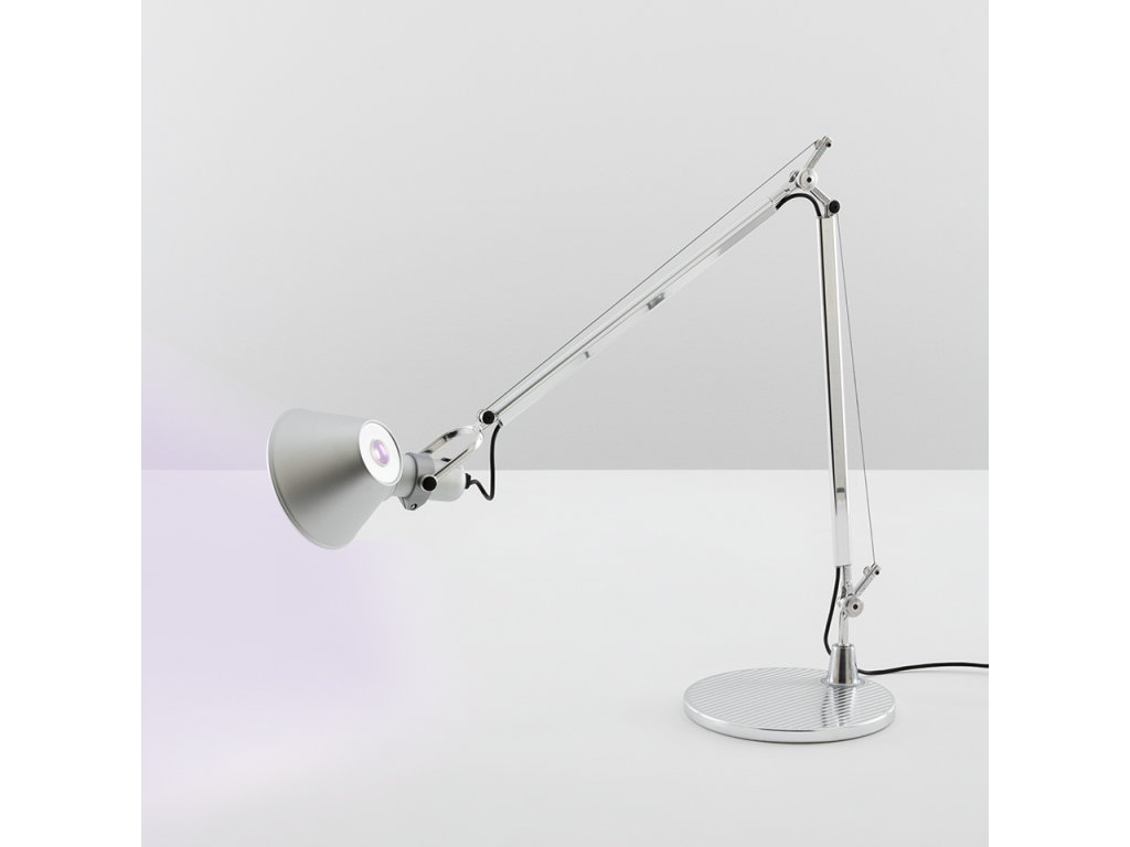 LED Stolnú lampu Tolomeo tvorí rameno uchytené pomocou prepracovaného kĺbového mechanizmu a lanka, ktoré umožňuje ľubovoľné nastavenie lampy a nasmerovania svetla tam, kde je potreba. Lampa zároveň drží stabilnú polohu, do ktorej ju nastavíte. Tienidlo v tvare misky, je možné podľa potreby ľubovoľne nasmerovať. Rám je vyrobený z lešteného hliníka, zatiaľ čo difúzor má matný eloxovaný hliník. Na výber je z troch možností uchytenia k stolu, okrúhla hliníková základňa, hliníkový klip a hliníková podpera.