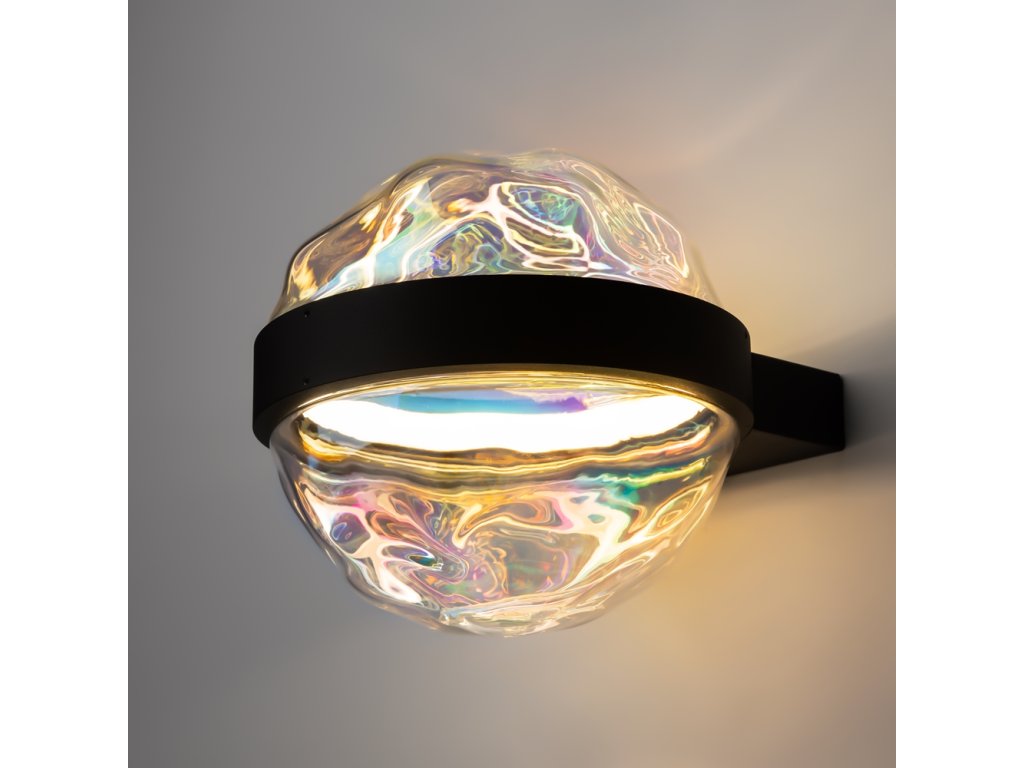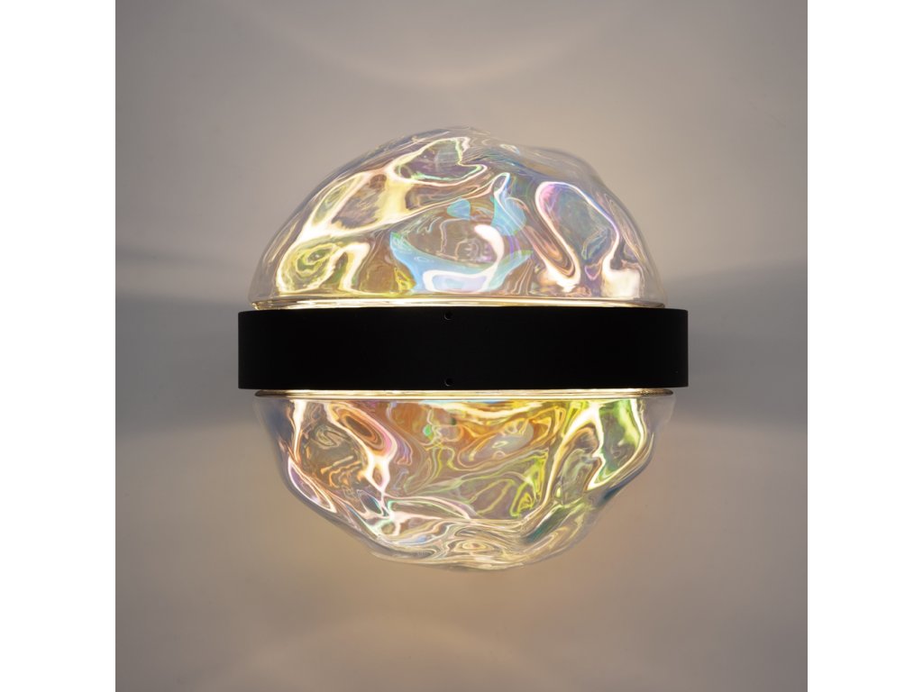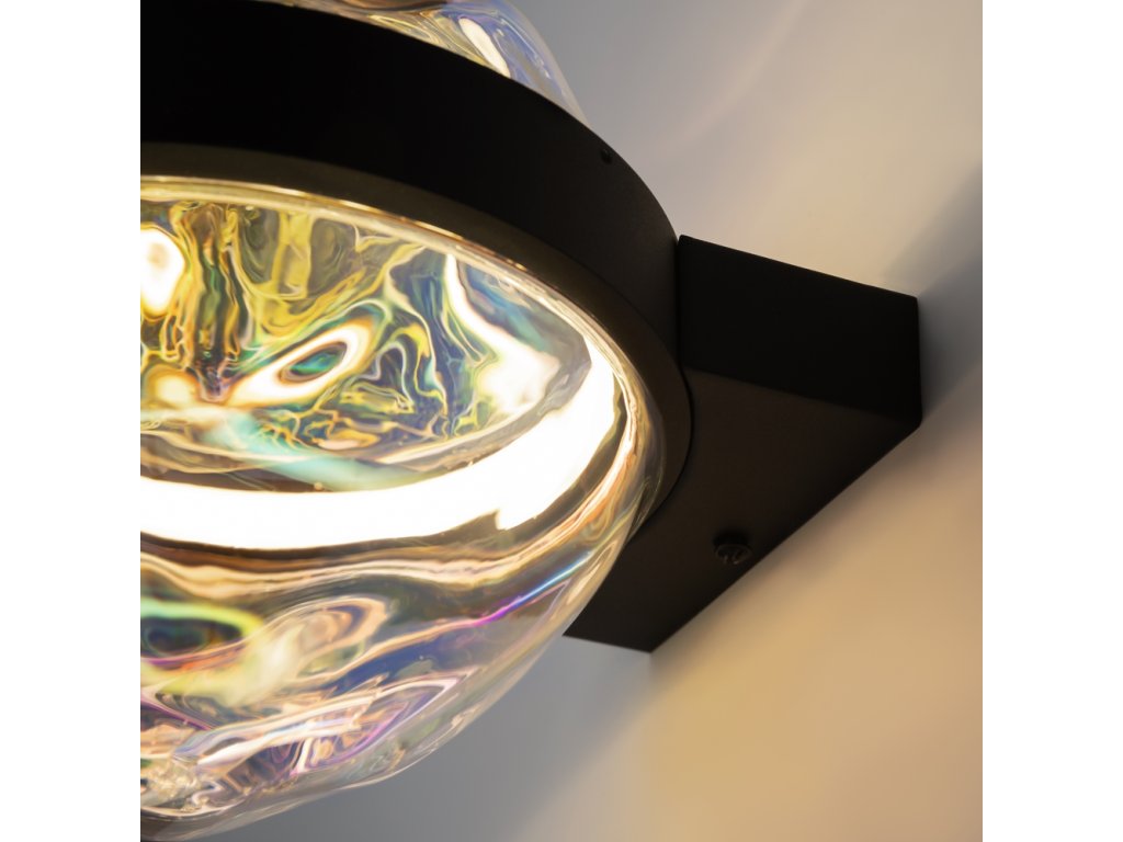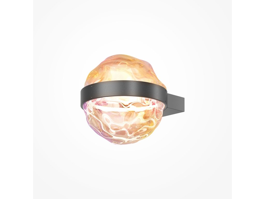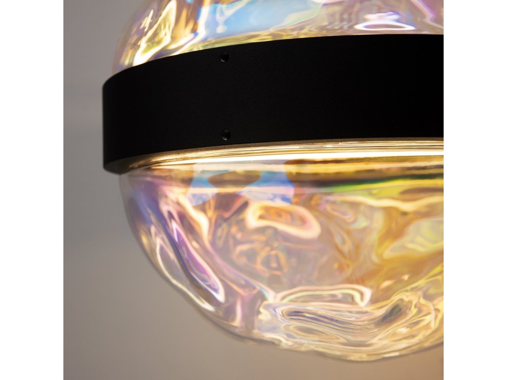 Krásne luxusné designové svietidlo od nemeckej značky Maytoni zo série MISTERIO. čiernu konštrukciu. Difúzor má nepravidelný okrúhly tvar a sklenený povrch odráža duchové odlesky.