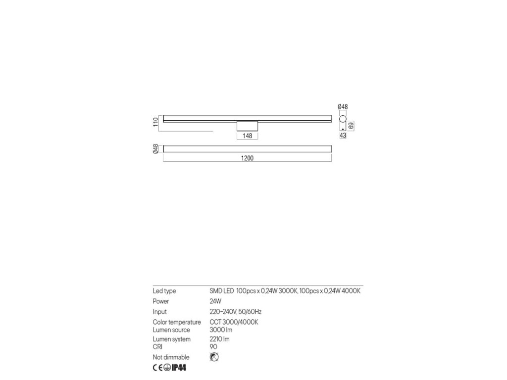 LED nástenné svietidlo KALI nad zrkadlo, 120cm