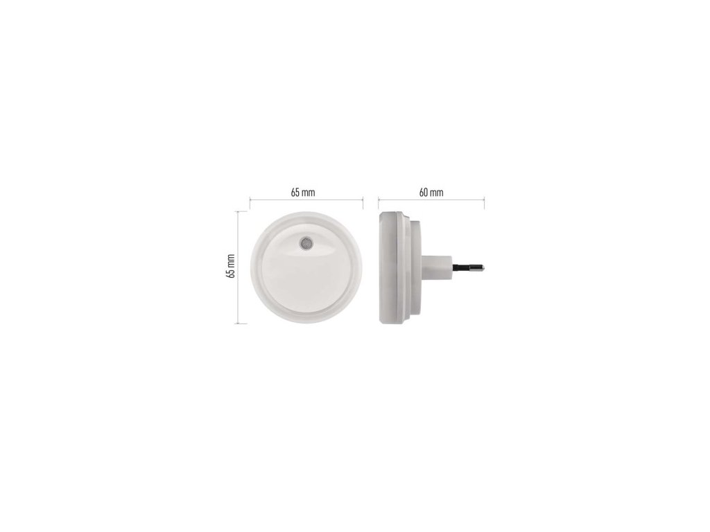 automatické zapnutie/vypnutie: áno|farba svetla: teplé biele|časové oneskorenie: neuvádza sa|fotosenzor: áno|maximálny dosvit: 3 m|maximálny svetelný tok: 5 lm|max. výstup 1× USB: neuvádza sa|max. výstup celkom: neuvádza sa|napájanie: 230 V~/50 Hz|natáčanie: ne|ochrana proti preťaženiu, prepätiu a skratu: neuvádza sa|počet USB výstupov: neuvádza sa|pohybové čidlo: ne|príkon: 0,3 W max.|predajný obal: 1 ks, blister | 63 mm|vypínač: ne|zdroj svetla: LEDDodatočné parametre