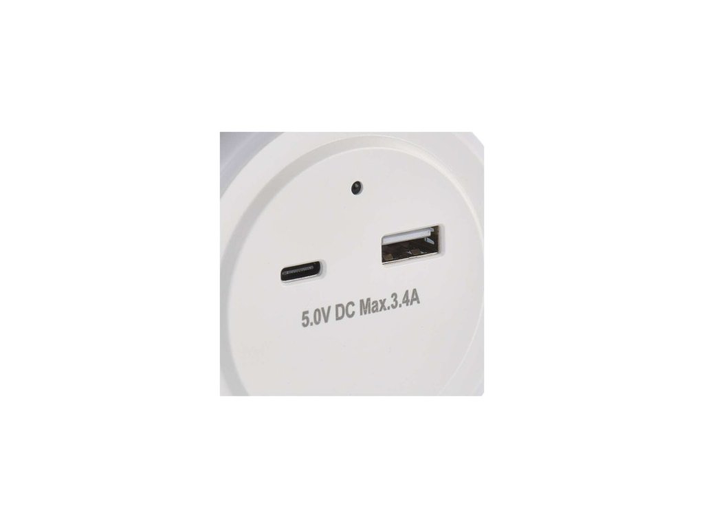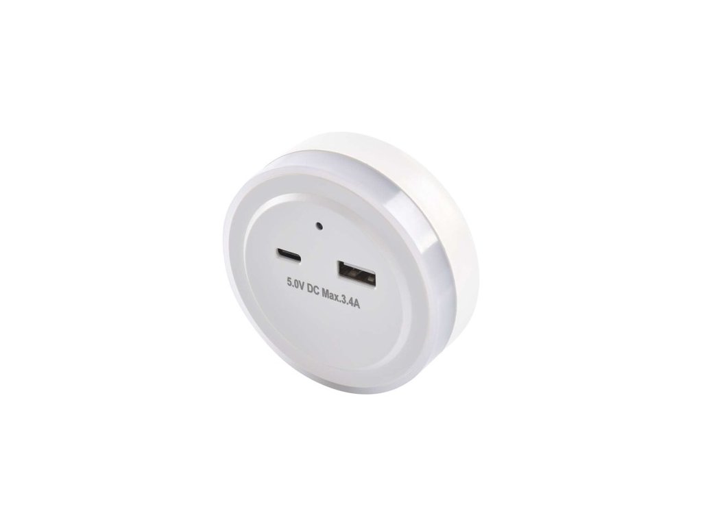 automatické zapnutie/vypnutie: áno|farba svetla: teplé biele|časové oneskorenie: neuvádza sa|fotosenzor: áno|maximálny dosvit: 2 m|maximálny svetelný tok: 5 lm|max. výstup 1× USB: 5 V/3,4 A|max 0,3 W|natáčanie: ne|ochrana proti preťaženiu, prepätiu a skratu: áno|počet USB výstupov: 2|pohybové čidlo: ne|príkon: 0,3 W|predajný obal: 1 ks, blister|režim svietenia: on/off/auto|rozmer: 60 × 60 × 73 mm