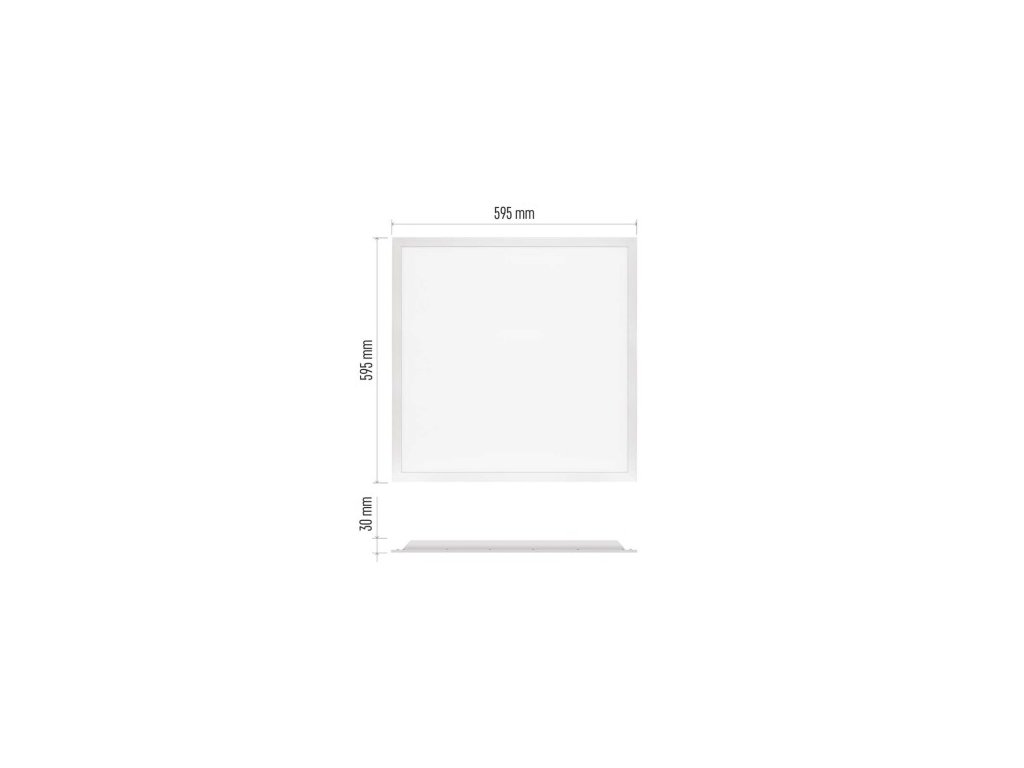 farba svetla: neutrálna biela|farba tela: biela|diaľkový ovládač: ne|do chodby a na schodisko: ne|do dielne a garáže: ne|do kancelárie: áno|do kúpeľne: ne|do kuchyne: ne|do obývačky, spálne a detskej izby: ne|dosah senzora: neuvádza sa|f| Hz|index podania farieb (CRI): Ra > 80|kategória: ESSENTIAL|krytie: IP20|materiál difúzora: plast (PC)|materiál LGP: neuvádza sa|materiál tela: oceľový plech|montážny otvor: neuvádza sa|možnosť stmievania: ne|náhrada za žiarovku:4× 2 V|na záhradu a balkón: ne|pohybový senzor: ne|príkon: 36 W|predajný obal: 1 ks, krabica|prúd: 155 mA|rad: neuvádza sa|rozmer: 595 × 595 × 30 mm|svetelná účinnosť: 100 lm/W|svetelný chromatickosti: 4 000 K|tvar: štvorec|typ difúzora: mliečny|typ svietidla: panel|účnik: > 0,9|UGR<: 22|uhol vyžarovania: 120°|umiestnenie: stropný|výstupný prúd zo zdroja: 860 mA|záruka: 25 000 hodín|spôsob montáže: vstavanéDodatočné parametre