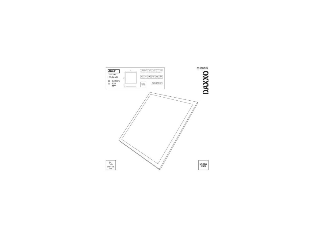 LED panel DAXXO backlit 60×60, štvorcový vstavaný biely, 36W neutr.