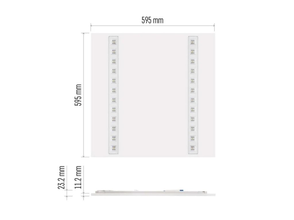 farba svetla: neutrálna biela|farba tela: biela|diaľkový ovládač: ne|do chodby a na schodisko: ne|do dielne a garáže: ne|do kancelárie: áno|do kúpeľne: ne|do kuchyne: ne|do obývačky, spálne a detskej izby: ne|dosah senzora: nemá senzor|flicker-0 Hz|index podania farieb (CRI): Ra > 80|kategória: PROFI PLUS|krytie: IP20|materiál difúzora: neuvádza sa|materiál LGP: neuvádza sa|materiál tela: oceľový plech|montážny otvor: neuvádza sa|možnosť stmievania: ne|náhrada za žiarovku: 4: 4 V|na záhradu a balkón: ne|pohybový senzor: ne|príkon: 27 W|predajný obal: 1 ks, krabica|prúd: 125 mA|rada: TROXO|rozmer: 595 × 595 × 23,2 mm|svetelná účinnosť: 117 lm/W|s| chromatickosti: 4 000 K|tvar: štvorec|typ difúzora: neuvádza sa|typ svietidla: panel|účinník: > 0,9|UGR<: 16|uhol vyžarovania: 85°|umiestnenie: stropný|výstupný prúd zo zdroja: 700 mA|záruku: 40 000 hodín|spôsob montáže: vstavanéDodatočné parametre