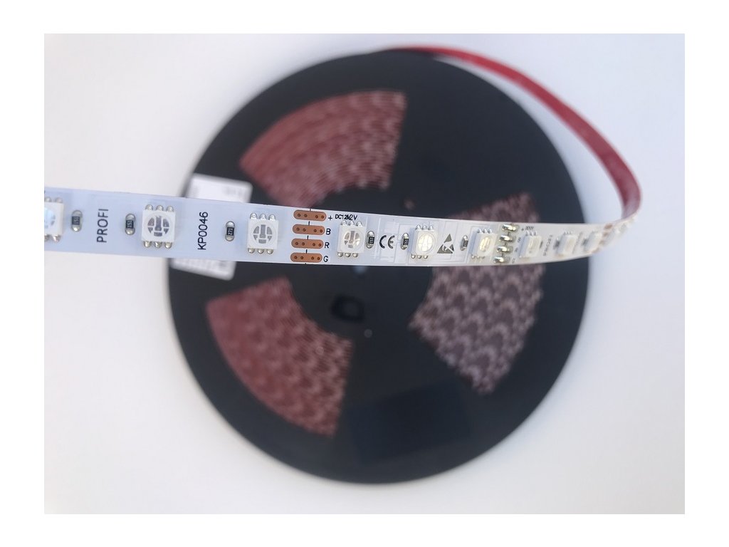RGB opasok s príkonom 14,4W v profesionálnom prevedení s kvalitným nosičom s 3OZ medi (cca 105um medi). Opasok je určený pre napätie 12V DC. Opasok obsahuje 60LED čipov na 1m v prevedení 5050, každý čip má integrované 3 farby svetla, červenú, zelenú a modrú. Vďaka tomu dokážu čipy generovať akúkoľvek farbu dúhy. (na riadenie pásky je nutný ovládač). LED pásik by mal byť uložený v hliníkovom profile, ktorý slúži ako chladič na zaručenie životnosti. V prípade obrysového použitia LED pásika by mal byť podklad na ktorý je LED pásik lepený tvorený tepelne vodivým materiálom - KOVOM.