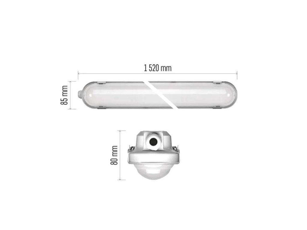 farba svetla: neutrálna biela|farba tela: šedá|frekvencia: 50/60 Hz|index podania farieb (CRI): Ra >80|krytie: IP66|materiál difúzora: plast (PC)|materiál spôn: nerez|materiál tela: plast (PC)|možnosť stmievania: áno|náhrada 220–240 V|príkon: 53 W|predajný obal: 1 ks, krabica|prúd: 245 mA|priebežná montáž: áno|rozmer: 1 520 × 85 × 80 mm|rozsah pracovnej teploty: -20 °C až +40 °C|stupeň ochrany proti mechanickým 0 700 lm|svetelný tok v núdzovom režime: neuvádza sa|teplota chromatickosti: 4 000 K|trieda ochrany: I|typ difúzora: mliečny|typ montáže: prisadená, závesná, na stenu|typ riadenia: DALI|uhol vyžarovania: 120°| na batériu: neuvádza sa|zdroj svetla: LED|životnosť: 50 000 hodínDodatočné parametre