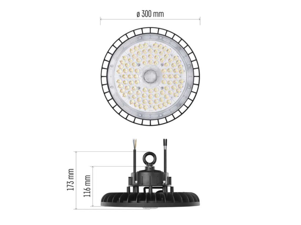 akumulátor: neuvádza sa|farba: čierna|farba svetla: neutrálna biela|dĺžka prívodného kábla: 30 cm|doba svietenia na AKU: neuvádza sa|dosah PIR senzora: nemá PIR|energetická trieda použitého svetelného zdroja: neuvádza sa|flicker-free: áno|frekvencia: C| 80|kategória: PROFI PLUS|krytie: IP65|materiál difúzora: plast (PC)|materiál prívodného kábla: guma|materiál tela: hliník|napájanie: zo siete|napätie: 220–240 V~|PIR senzor: ne|počet priechodných zásuviek: neuvádza sa| W|predajný obal: 1 ks, krabica|prúd: 650 mA|rad: ASTER|rozmer: priemer 300 × 173 mm|rozsah pracovnej teploty: -35 °C až +50 °C|stmievanie: ne|stupeň ochrany proti mechanickým nárazom: IK08|svetelná účinnosť: 10 500 lm|teplota chromatickosti: 4 000 K|typ prívodného kábla: neuvádza sa|typ priechodných zásuviek: neuvádza sa|účnik: > 0,9|uhol vyžarovania: 60°|záručná doba: 5 rokov|zdroj svetla: LED|životnosť: 50Dodatočné parametre
