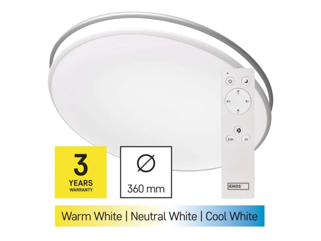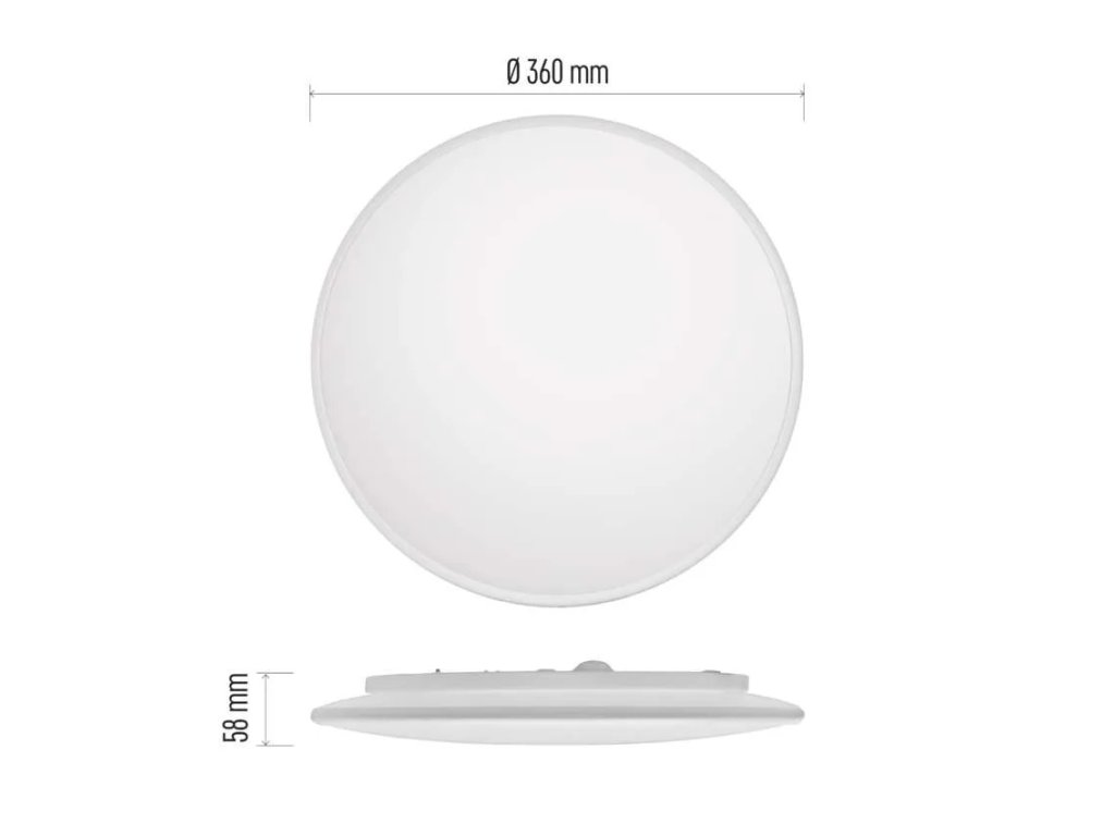 farba svetla: teplá biela–studená biela|farba tela: biela|diaľkový ovládač: áno (2× AAA, R03)|do chodby a na schodisko: ne|do dielne a garáže: ne|do kancelárie: áno|do kúpeľne: ne|do kuchyne: áno|do obývačky, spálne senzor|flicker-free: áno|frekvencia: 50/60 Hz|index podania farieb (CRI): Ra > 80|kategória: EXCLUSIVE|krytie: IP20|materiál difúzora: plast (PMMA)|materiál LGP: neuvádza sa|materiál tela: oceľový plech|montážny otvor: montáž žiarovku: 120 W|napätie: 220–240 V|na záhradu a balkón: ne|pohybový senzor: ne|príkon: 24 W|predajný obal: 1 ks, krabica|prúd: 125 mA|rada: ALVI|rozmer: priemer 360 × 58 mm|svetel 80–1 920 lm|teplota chromatickosti: 2 700–6 500 K|tvar: kruh|typ difúzora: mliečny|typ svietidla: klasické svietidlo|účiník: > 0,5|UGR<: neuvádza sa|uhol vyžarovania: 115°|umiestenie se|záručná doba: 3 roky|zdroj svetla: LED|životnosť: 25 000 hodín|spôsob montáže: prisadenéDodatočné parametre