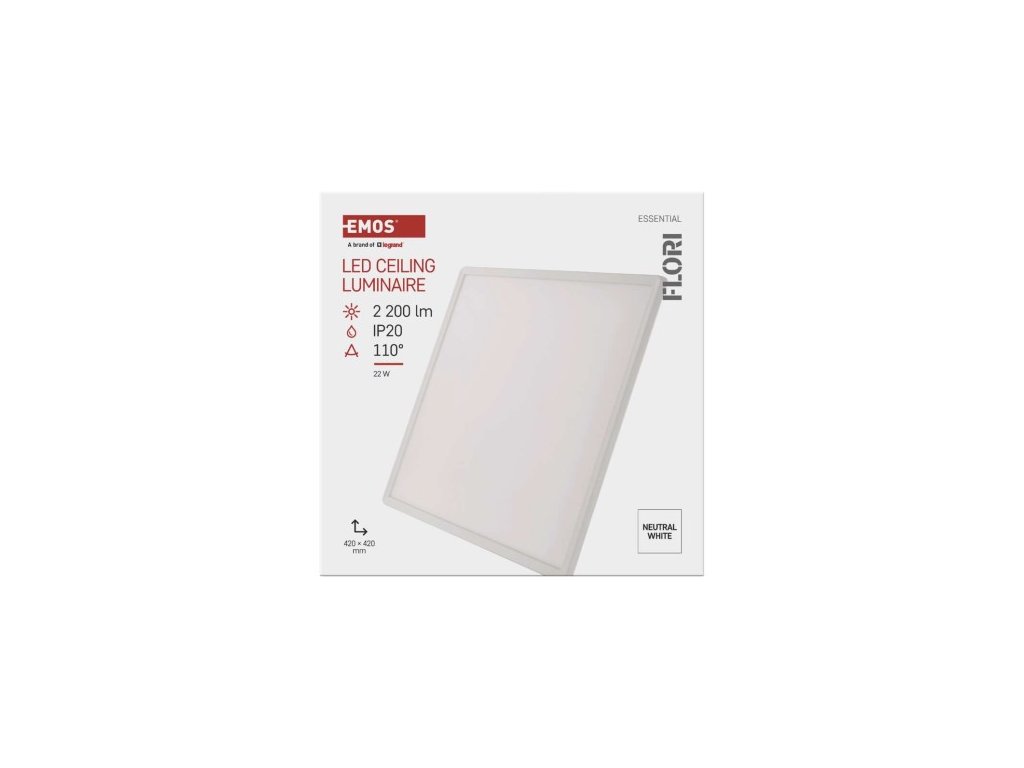 farba svetla: neutrálna biela|farba tela: biela|diaľkový ovládač: ne|do chodby a na schodisko: áno|do dielne a garáže: ne|do kancelárie: ne|do kúpeľne: ne|do kuchyne: áno|do obývačky, spálne a detskej izby: áno|dosah senzora: neuvádza sa| 50/60 Hz|index podania farieb (CRI): Ra > 80|kategória: ESSENTIAL|krytie: IP20|materiál difúzora: plast|materiál LGP: neuvádza sa|materiál tela: plast|montážny otvor: neuvádza sa|možnosť stmievania: ne|náhrada za žiarovku2~|2 záhradu a balkón: ne|pohybový senzor: ne|príkon: 22 W|predajný obal: 1 ks, krabica|prúd: 165 mA|rada: FLORI|rozmer: 420 × 420 × 29 mm|svetelná účinnosť: 100 lm/W|svetelný tok: 0 000 K|tvar: štvorec|typ difúzora: mliečny|typ svietidla: klasické svietidlo|účiník: > 0,5|UGR<: neuvádza sa|uhol vyžarovania: 110°|umiestnenie: stropný/nástenné|výstupný prúd zo zdroja: neuvádza sa|záručná doba:| 000 hodín|spôsob montáže: prisadenéDodatočné parametre