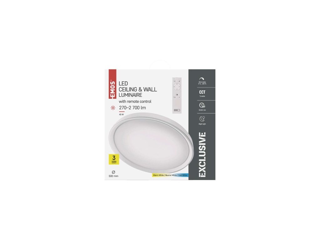 farba svetla: teplá biela–studená biela|farba tela: biela|diaľkový ovládač: áno|do chodby a na schodisko: ne|do dielne a garáže: ne|do kancelárie: áno|do kúpeľne: ne|do kuchyne: áno|do obývačky, spálne a detskej izby: áno|dosah áno|frekvencia: 50/60 Hz|index podania farieb (CRI): Ra > 80|kategória: EXCLUSIVE|krytie: IP20|materiál difúzora: plast (PMMA)|materiál LGP: neuvádza sa|materiál tela: plast (PS) + oceľový plech|montážny otvor: neuvádza sa| 160 W|napätie: 220–240 V|na záhradu a balkón: ne|pohybový senzor: neuvádza sa|príkon: 45 W|predajný obal: 1 ks, krabica|prúd: 340 mA|rada: ILVI|rozmer: priemer 500 × 70 mm|svetlo 270–2 700 lm|teplota chromatičnosti: 2 700–6 500 K|tvar: kruh|typ difúzora: mliečny|typ svietidla: klasické svietidlo|účnik: > 0,9|UGR<: neuvádza sa|uhol vyžarovania: 120°| mA|záručná doba: 3 roky|zdroj svetla: LED|životnosť: 30 000 hodín|spôsob montáže: prisadenéDodatočné parametre