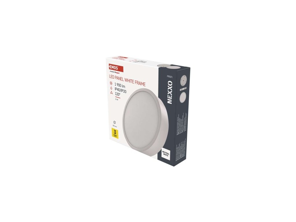 farba svetla: neutrálna biela|farba tela: biela|diaľkový ovládač: ne|do chodby a na schodisko: áno|do dielne a garáže: ne|do kancelárie: áno|do kúpeľne: ne|do kuchyne: áno|do obývačky, spálne a detskej izby: áno|dosah senzora: nemá senzor| 50/60 Hz|index podania farieb (CRI): Ra > 80|kategória: PROFI|krytie: IP20/IP40|materiál difúzora: plast (PMMA)|materiál LGP: PMMA|materiál tela: oceľový plech|montážny otvor: neuvádza sa|možnosť stmievania: ne|náhrada 220–240 V|na záhradu a balkón: ne|pohybový senzor: ne|príkon: 21 W|predajný obal: 1 ks, papierová krabička|prúd: 700 mA|rada: NEXXO|rozmer: priemer 225 × 42 mm|svetelná účinnosť: 90 lm/0 chromatičnosti: 4 000 K|tvar: kruh|typ difúzora: mliečny|typ svietidla: klasické svietidlo|účnik: > 0,9|UGR<: neuvádza sa|uhol vyžarovania: 120°|umiestnenie: stropný/nástenné|výstupný prúd zo roky: neuvádza| LED|životnosť: 30 000 hodín|spôsob montáže: prisadenéDodatočné parametre