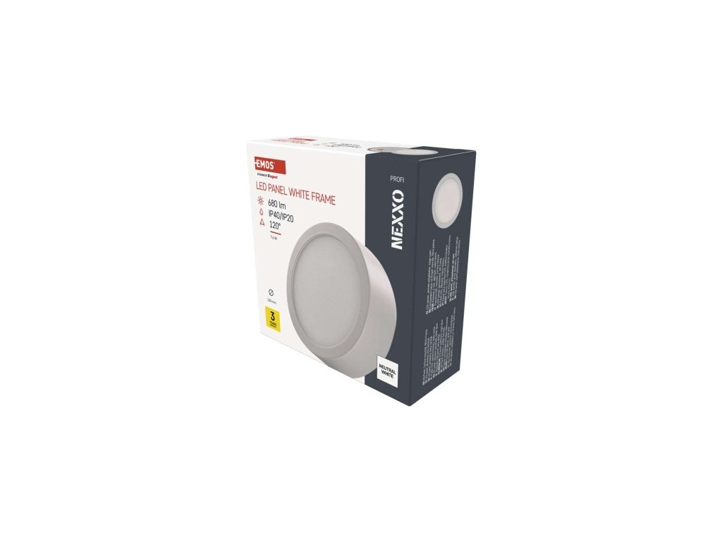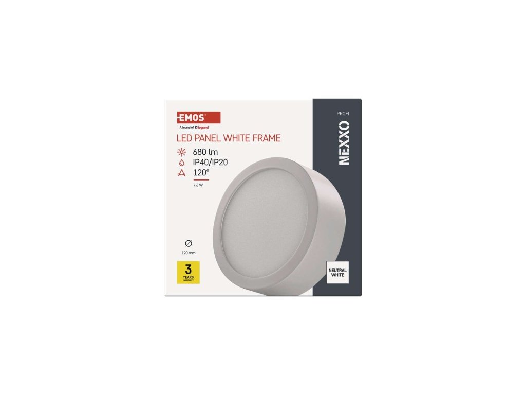 farba svetla: neutrálna biela|farba tela: biela|diaľkový ovládač: ne|do chodby a na schodisko: áno|do dielne a garáže: ne|do kancelárie: áno|do kúpeľne: ne|do kuchyne: áno|do obývačky, spálne a detskej izby: áno|dosah senzora: nemá senzor| 50/60 Hz|index podania farieb (CRI): Ra > 80|kategória: PROFI|krytie: IP20/IP40|materiál difúzora: plast (PMMA)|materiál LGP: PMMA|materiál tela: oceľový plech|montážny otvor: neuvádza sa|možnosť stmievania: ne|náhrada: 220–240 V|na záhradu a balkón: ne|pohybový senzor: ne|príkon: 7,6 W|predajný obal: 1 ks, papierová krabička|prúd: 300 mA|rada: NEXXO|rozmer: priemer 120 × 40 mm|svetelná účinnosť: 90 lm/8 chromatickosti: 4 000 K|tvar: kruh|typ difúzora: mliečny|typ svietidla: klasické svietidlo|účiník: > 0,5|UGR<: neuvádza sa|uhol vyžarovania: 120°|umiestnenie: stropný/nástenné|výstupný prúd zo 3 rokov| LED|životnosť: 30 000 hodín|spôsob montáže: prisadenéDodatočné parametre