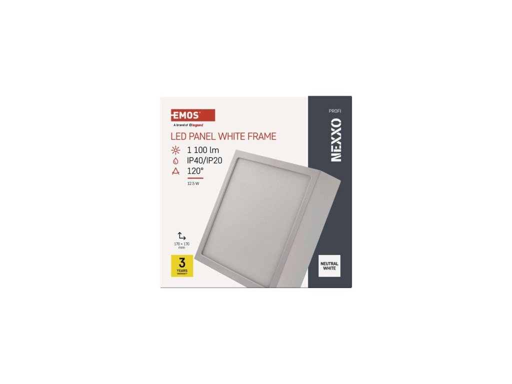 farba svetla: neutrálna biela|farba tela: biela|diaľkový ovládač: ne|do chodby a na schodisko: áno|do dielne a garáže: ne|do kancelárie: áno|do kúpeľne: ne|do kuchyne: áno|do obývačky, spálne a detskej izby: áno|dosah senzora: nemá senzor| 50/60 Hz|index podania farieb (CRI): Ra > 80|kategória: PROFI|krytie: IP20/IP40|materiál difúzora: plast (PMMA)|materiál LGP: PMMA|materiál tela: oceľový plech|montážny otvor: neuvádza sa|možnosť stmievania: ne|náhrada: 220–240 V|na záhradu a balkón: ne|pohybový senzor: ne|príkon: 12,5 W|predajný obal: 1 ks, krabica|prúd: 300 mA|rada: NEXXO|rozmer: 170 × 170 × 42 mm|svetelná účinnosť: 0 lm|teplota chromatickosti: 4 000 K|tvar: štvorec|typ difúzora: mliečny|typ svietidla: klasické svietidlo|účnik: > 0,5|UGR<: neuvádza sa|uhol vyžarovania: 120°|umiestnenie: stropné/nástenné|výstup roky|zdroj svetla: LED|životnosť: 30 000 hodín|spôsob montáže: prisadenéDodatočné parametre