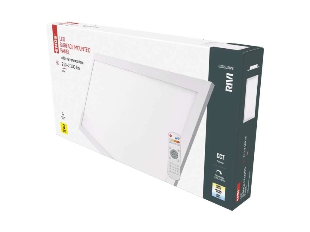 farba svetla: teplá biela–studená biela|farba tela: biela|diaľkový ovládač: áno|do chodby a na schodisko: ne|do dielne a garáže: ne|do kancelárie: áno|do kúpeľne: ne|do kuchyne: áno|do obývačky, spálne a detskej izby: áno|dosah áno|frekvencia: 50/60 Hz|index podania farieb (CRI): Ra > 80|kategória: EXCLUSIVE|krytie: IP20|materiál difúzora: plast (PC)|materiál LGP: PS|materiál tela: hliník|montážny otvor: neuvádza sa|možnosť stmievania: sa 220–240 V|na záhradu a balkón: ne|pohybový senzor: ne|príkon: 25 W|predajný obal: 1 ks, krabica|prúd: 110 mA|rada: RIVI|rozmer: 295 × 595 × 52 mm|svetelná účinnosť: 85 lm/0 lm|teplota chromatickosti: 2 700–6 000 K|tvar: obdĺžnik|typ difúzora: mliečny|typ svietidla: klasické svietidlo|účnik: > 0,9|UGR<: 22|uhol vyžarovania: 115°|umiestnenie: stropný|zástupný roky|zdroj svetla: LED|životnosť: 30 000 hodín|spôsob montáže: prisadenéDodatočné parametre