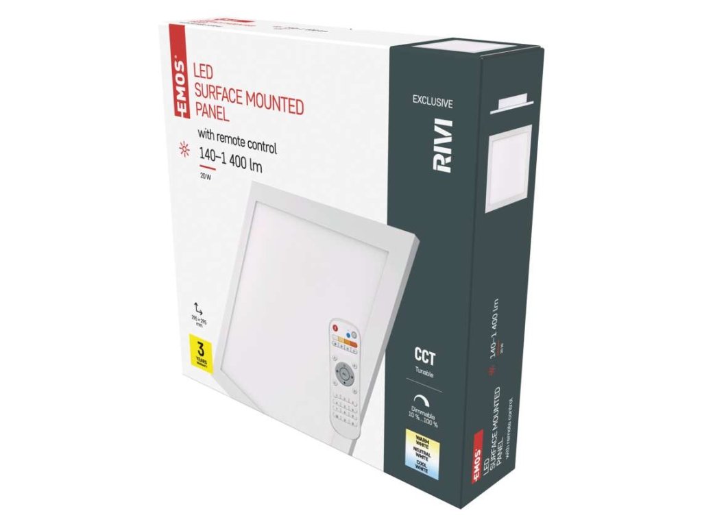 farba svetla: teplá biela–studená biela|farba tela: biela|diaľkový ovládač: áno|do chodby a na schodisko: ne|do dielne a garáže: ne|do kancelárie: áno|do kúpeľne: ne|do kuchyne: áno|do obývačky, spálne a detskej izby: áno|dosah áno|frekvencia: 50/60 Hz|index podania farieb (CRI): Ra > 80|kategória: EXCLUSIVE|krytie: IP20|materiál difúzora: plast (PC)|materiál LGP: PS|materiál tela: hliník|montážny otvor: neuvádza sa|možnosť stmievania: sa 220–240 V|na záhradu a balkón: ne|pohybový senzor: ne|príkon: 20 W|predajný obal: 1 ks, krabica|prúd: 85 mA|rad: RIVI|rozmer: 295 × 295 × 52 mm|svetelná účinnosť: 70 lm/W0 lm|teplota chromatickosti: 2 700–6 000 K|tvar: štvorec|typ difúzora: mliečny|typ svietidla: klasické svietidlo|účinník: > 0,9|UGR<: 22|uhol vyžarovania: 115°|umiestnenie: stropný|výstupný roky|zdroj svetla: LED|životnosť: 30 000 hodín|spôsob montáže: prisadenéDodatočné parametre