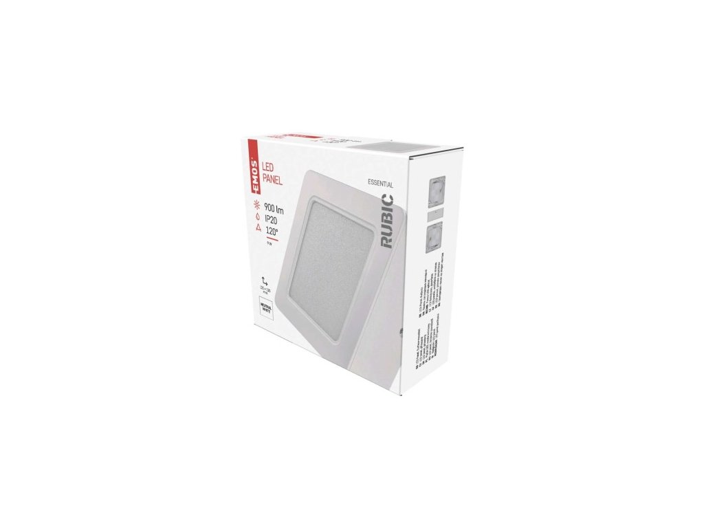 farba svetla: neutrálna biela|farba tela: biela|diaľkový ovládač: ne|do chodby a na schodisko: áno|do dielne a garáže: áno|do kancelárie: ne|do kúpeľne: ne|do kuchyne: áno|do obývačky, spálne a detskej izby: ne|dosah senzoru: nemá senzor|fl Hz|index podania farieb (CRI): Ra > 80|kategória: ESSENTIAL|krytie: IP20|materiál difúzora: plast (PC)|materiál LGP: neuvádza sa|materiál tela: plast (PC)|montážny otvor: neuvádza sa|možnosť stmievania: ne|náhrada za žiarovku2–25:25 balkón: ne|pohybový senzor: ne|príkon: 9 W|predajný obal: 1 ks, krabica|prúd: 78 mA|rad: RUBIC|rozmer: 120 × 120 × 42 mm|svetelná účinnosť: 100 lm/W|svetelný tok: 900 lm K|tvar: štvorec|typ difúzora: mliečny|typ svietidla: klasické svietidlo|účnik: > 0,5|UGR<: neuvádza sa|uhol vyžarovania: 120°|umiestnenie: stropný/nástenné|výstupný prúd zo zdroja: 50 mA|záručná doba: 2: 000 hodín|spôsob montáže: prisadenéDodatočné parametre