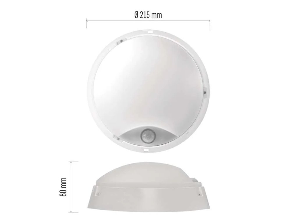 farba svetla: teplá biela|farba tela: čierna/biela|diaľkový ovládač: ne|do chodby a na schodisko: áno|do dielne a garáže: áno|do kancelárie: ne|do kúpeľne: áno|do kuchyne: ne|do obývačky, spálne a detskej izby: ne|dosah senzora: 10 m 50/60 Hz|index podania farieb (CRI): Ra > 80|kategória: CLASSIC|krytie: IP54|materiál difúzora: plast (PC)|materiál LGP: neuvádza sa|materiál tela: plast (PC)|montážny otvor: neuvádza sa|možnosť stmievanie: ne|náhrada za 2 V|na záhradu a balkón: áno|pohybový senzor: PIR|príkon: 14 W|predajný obal: 1 ks, krabica|prúd: 120 mA|rad: ZURI|rozmer: priemer 215 × 80 mm|svetelná účinnosť: 71 lm/W|svetelný tok: 000 K|tvar: kruh|typ difúzora: mliečny|typ svietidla: klasické svietidlo|účnik: > 0,5|UGR<: neuvádza sa|uhol vyžarovania: 120°|umiestnenie: nástenné|výstupný prúd zo zdroja: neuvádza sa|záručná doba: 2 roky|2 hodín|spôsob montáže: prisadené