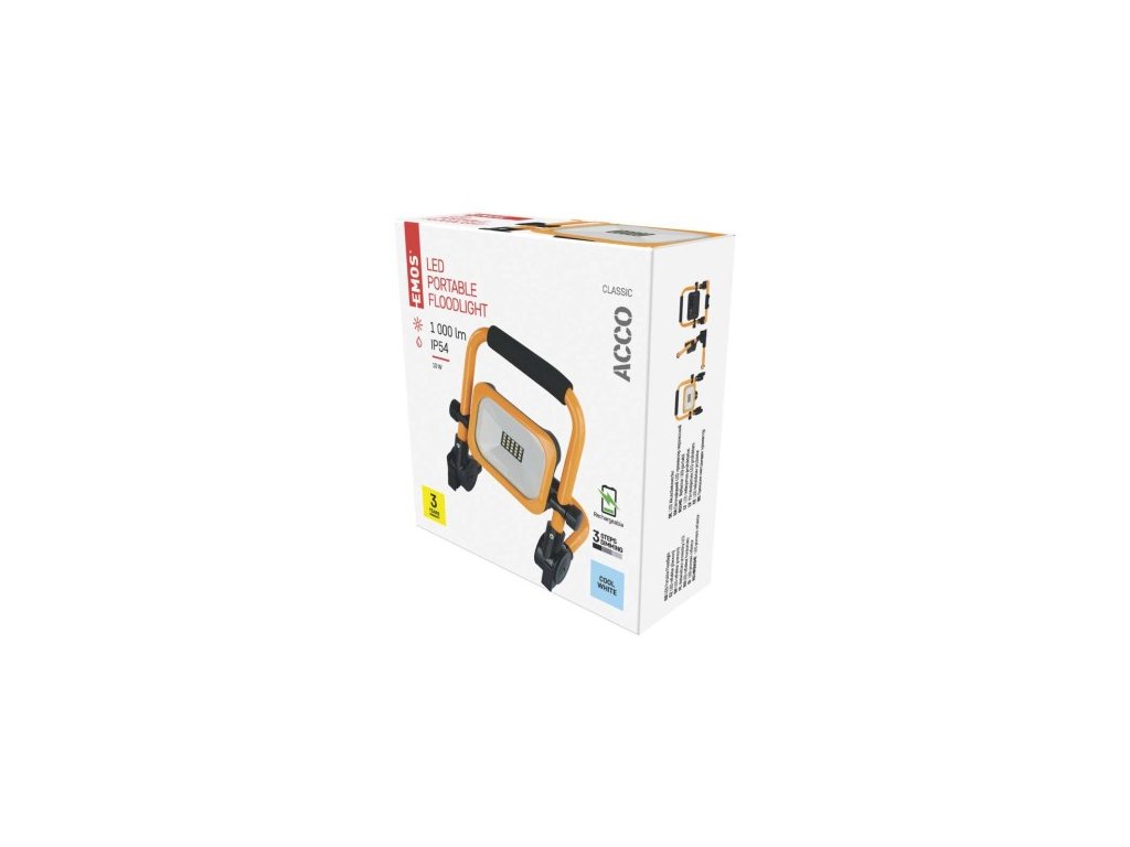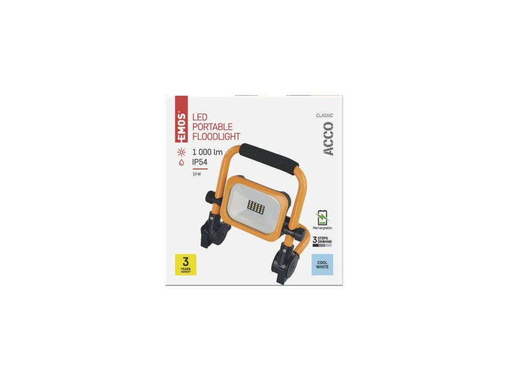 LED reflektor ACCO nabíjací prenosný, 10W, žltý, studená biela