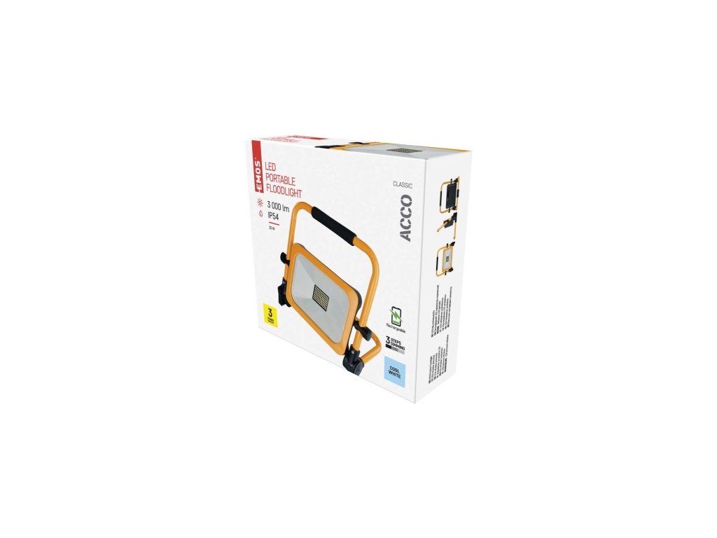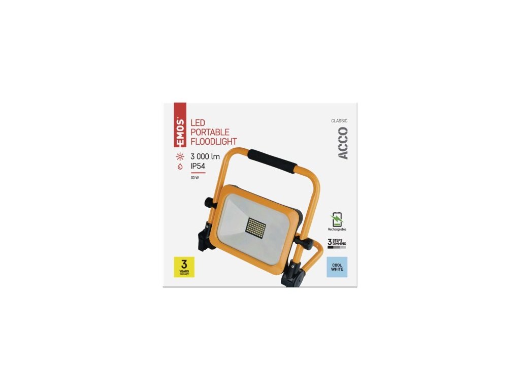 LED reflektor ACCO nabíjací prenosný, 30W, žltý, studená biela