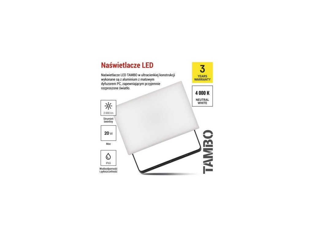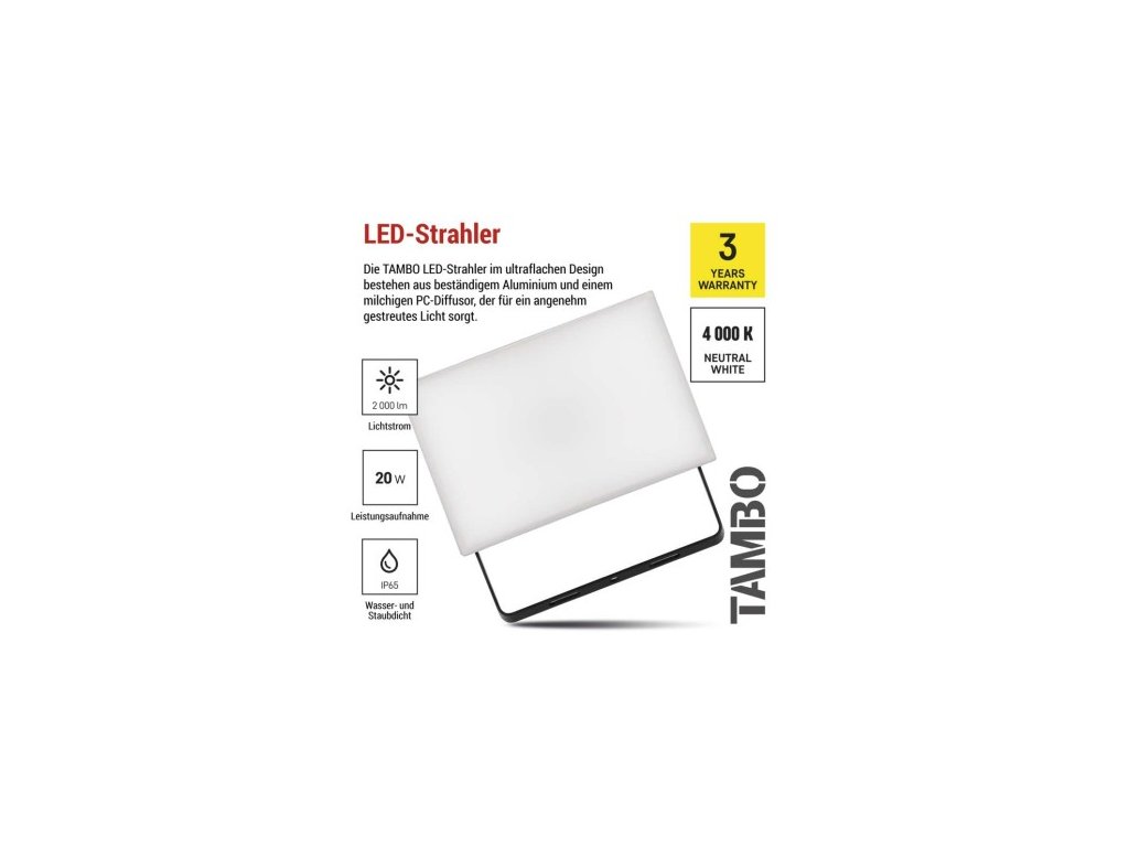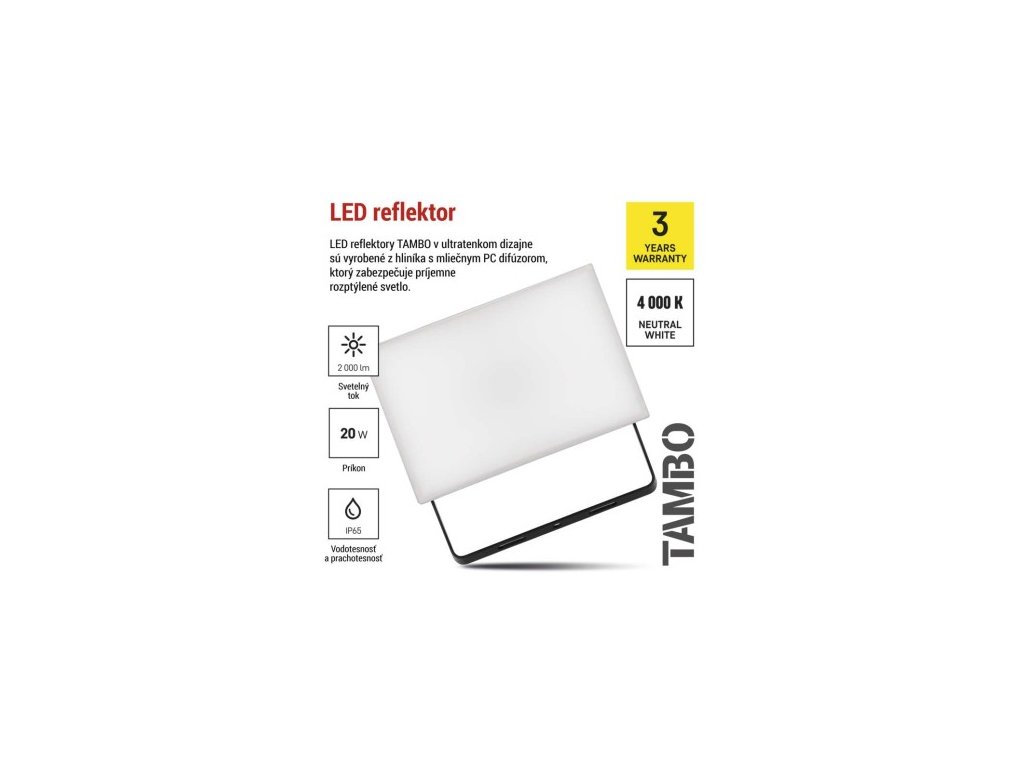 LED reflektor TAMBO, 20 W, 2000l m, IP65, čierny