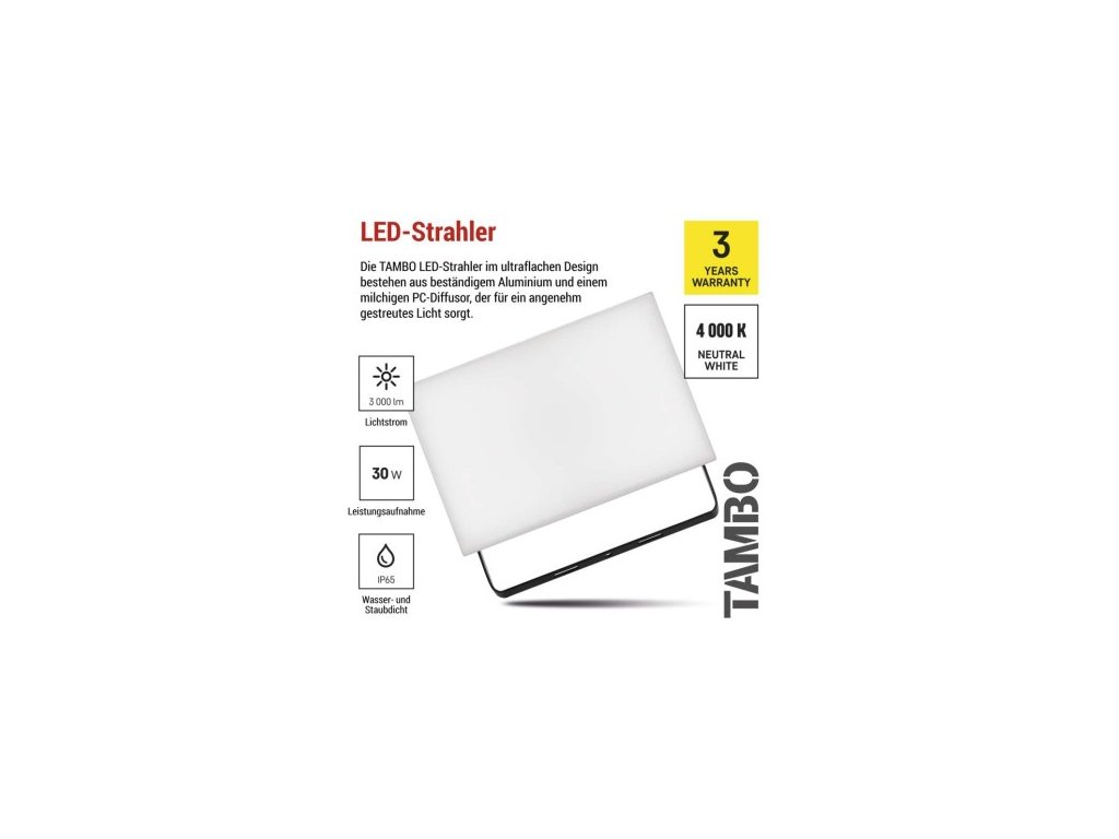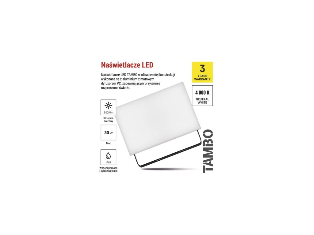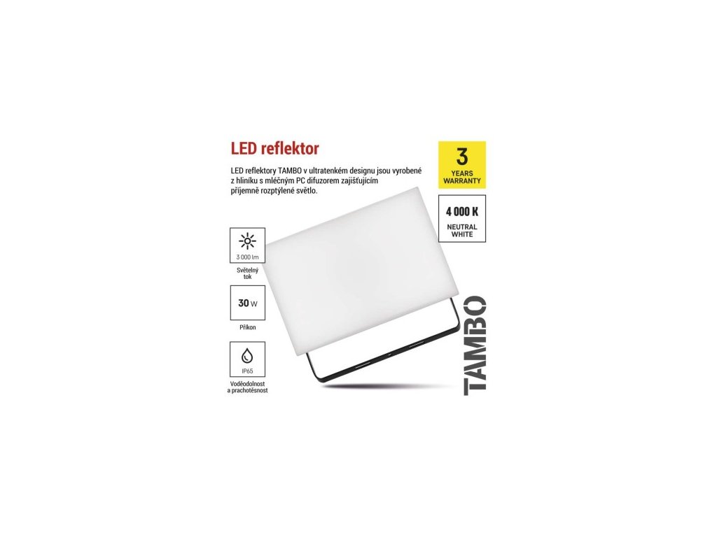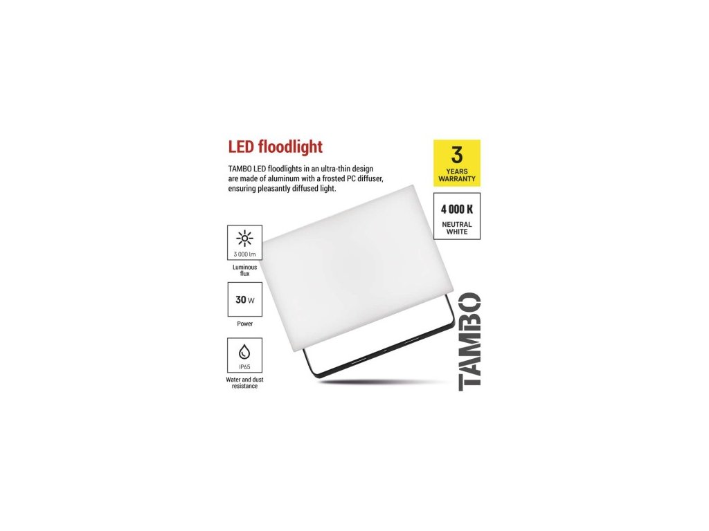 LED reflektor TAMBO, 30 W, 3000l m, IP65, čierny
