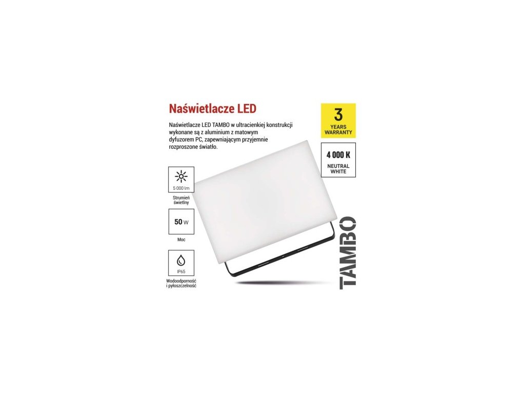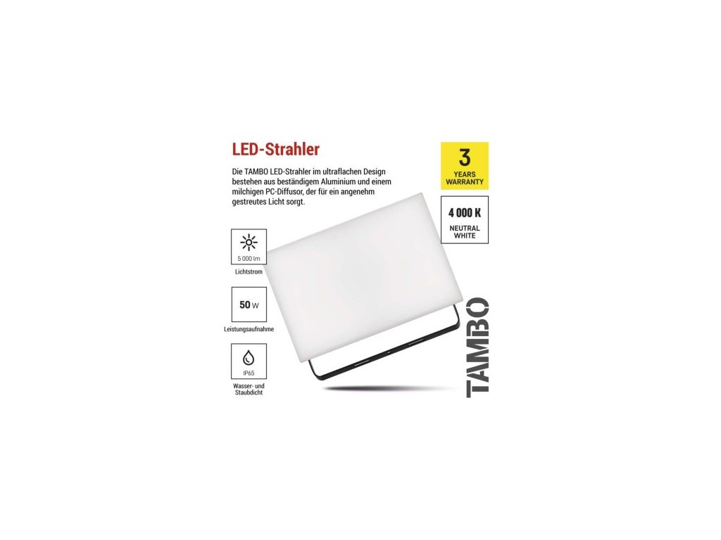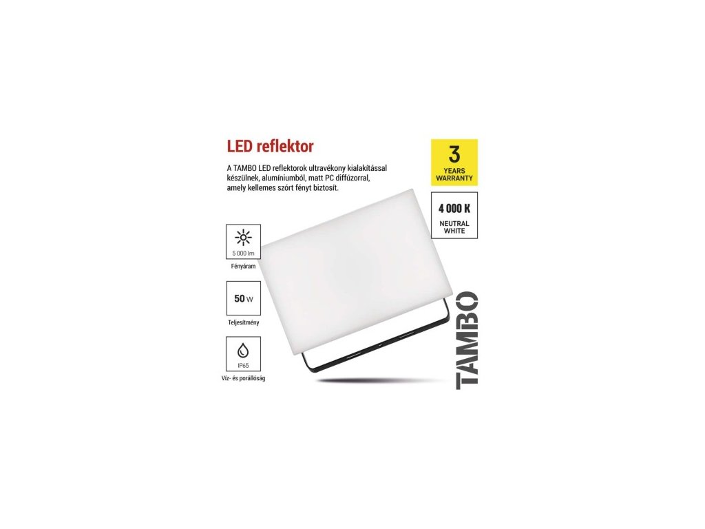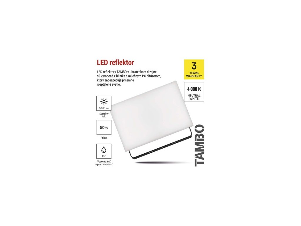 LED reflektor TAMBO, 50 W, 5000l m, IP65, čierny