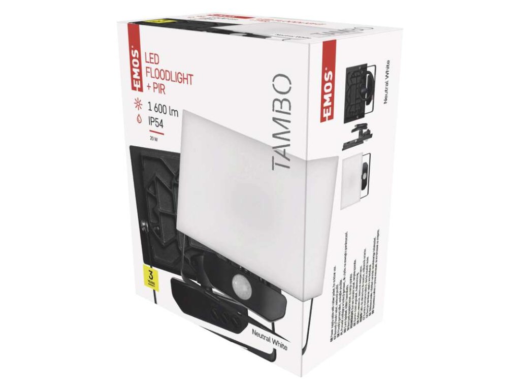 Reflektory TAMBO sú tenké iba 64 milimetrov a pritom nahradia až 430W žiarovku. Vďaka mliečnemu difúzoru poskytujú príjemne rozptýlené svetlo. Tento ultra tenký reflektor si navyše môžete zaobstarať aj s pohybovým čidlom. Vďaka vysokému stupňu krytia IP65 sú reflektory TAMBO spoľahlivo osvetľujú vnútorné aj vonkajšie priestory v teplotách od -20 do +40 °C. Životnosť svietidla je 25 tisíc hodín. Uhol osvetlenia je 120° a poskytuje svetelný tok až 4000 lm.